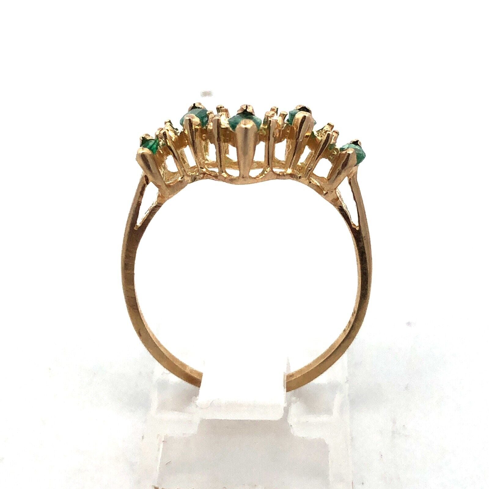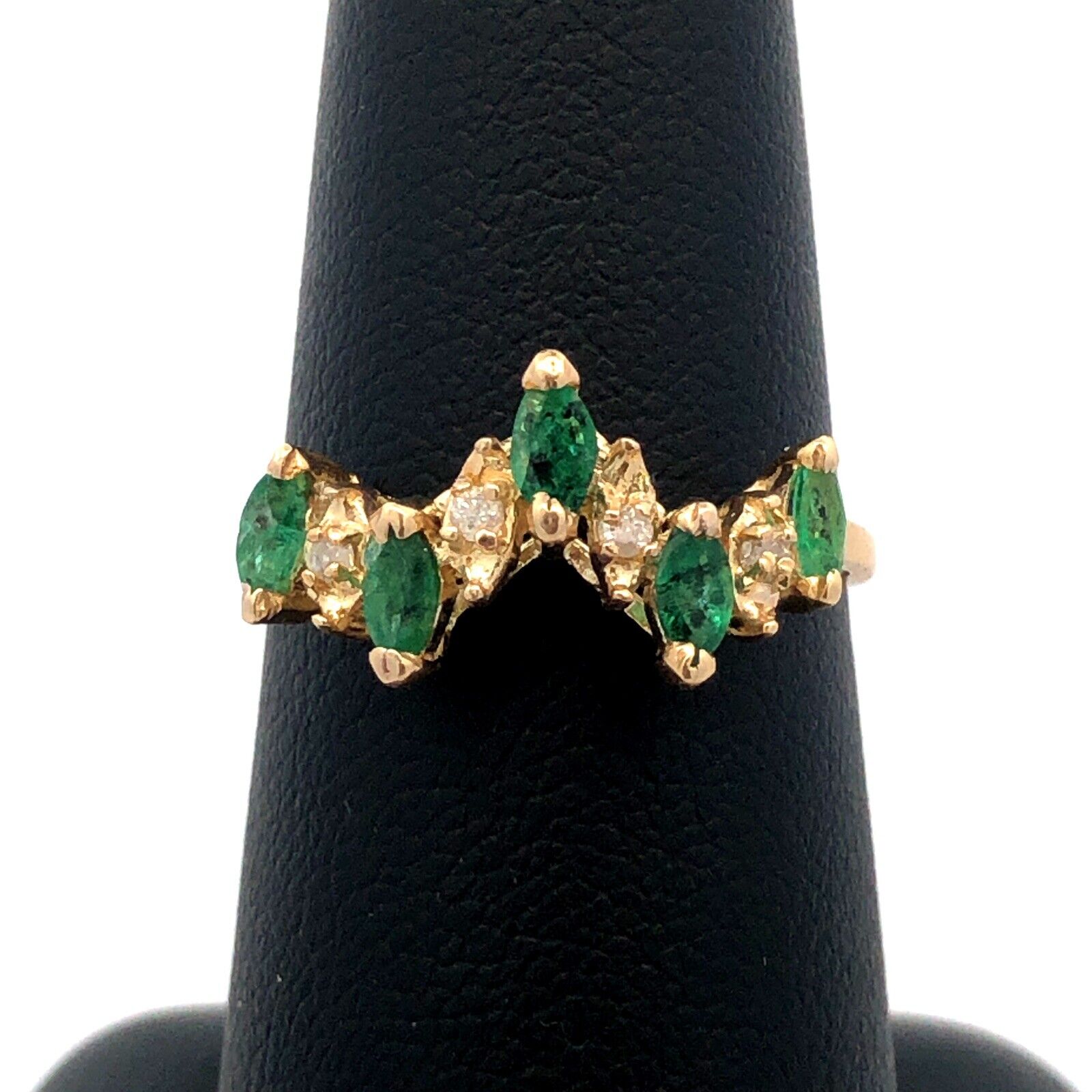 Estate 14K Yellow Gold Marquise Emerald Diamond Stacking Band Ring
