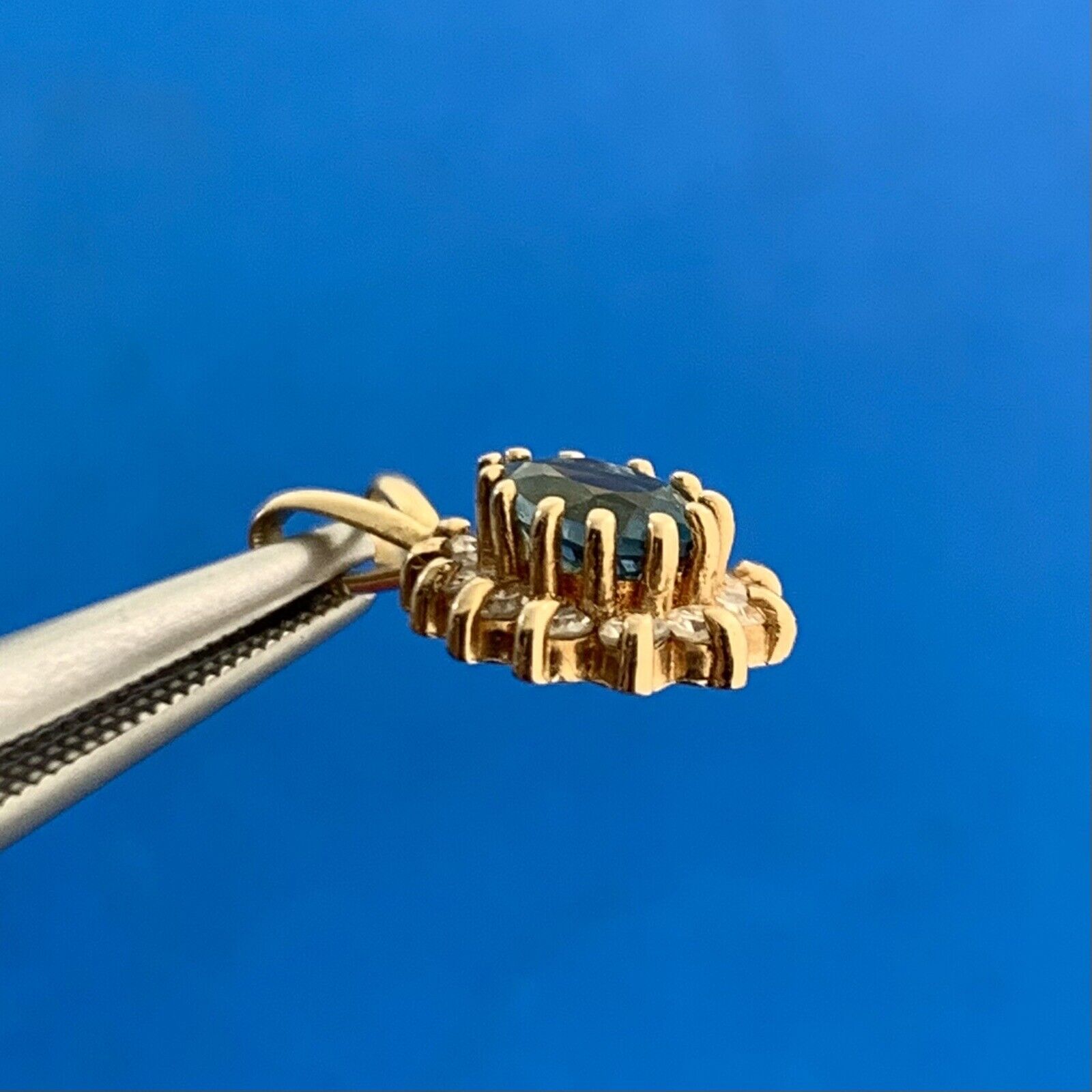 Estate 14k Yellow Gold Pear Blue Topaz Diamond Halo Pendant