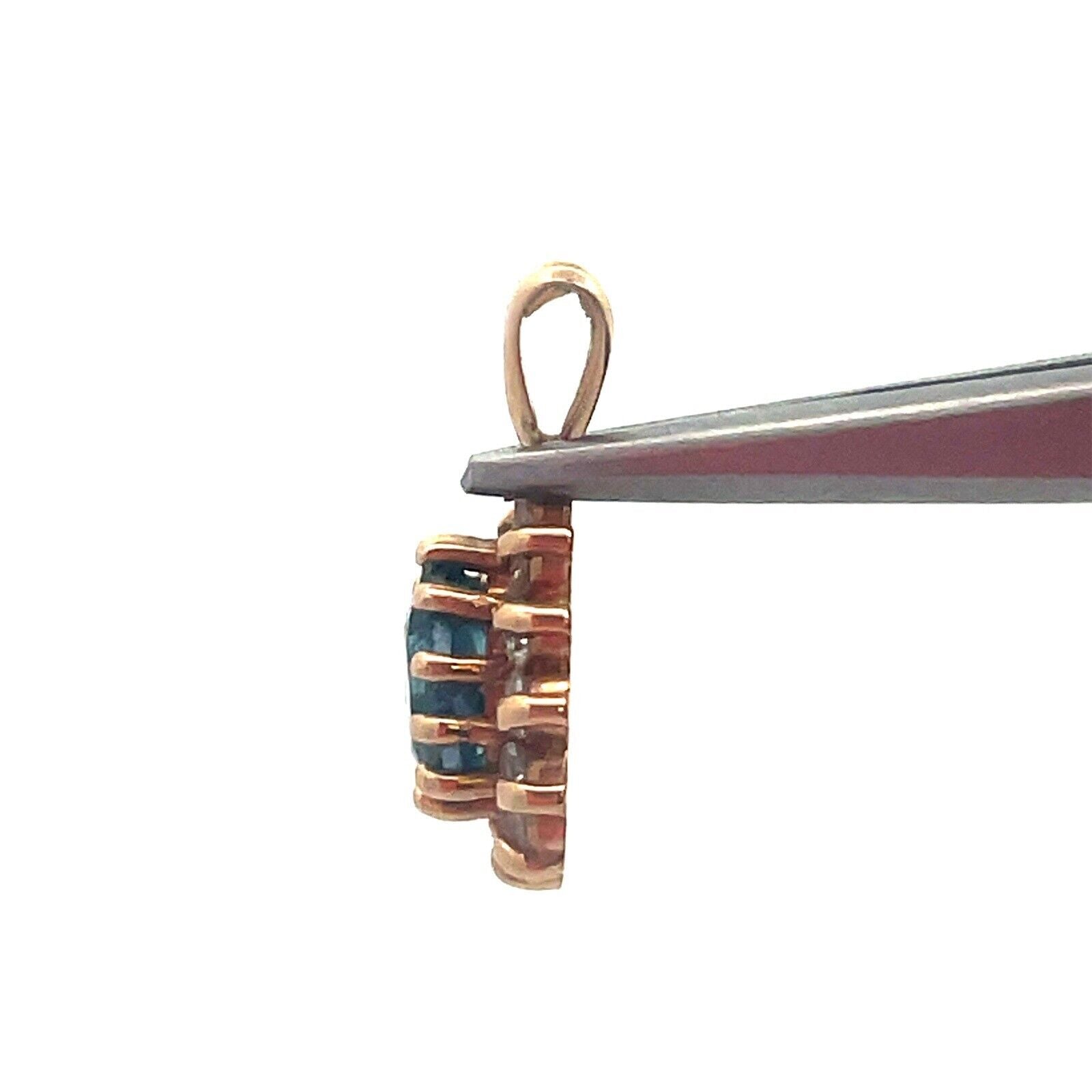 - Estate 14k Yellow Gold Pear Blue Topaz Diamond Halo Pendant