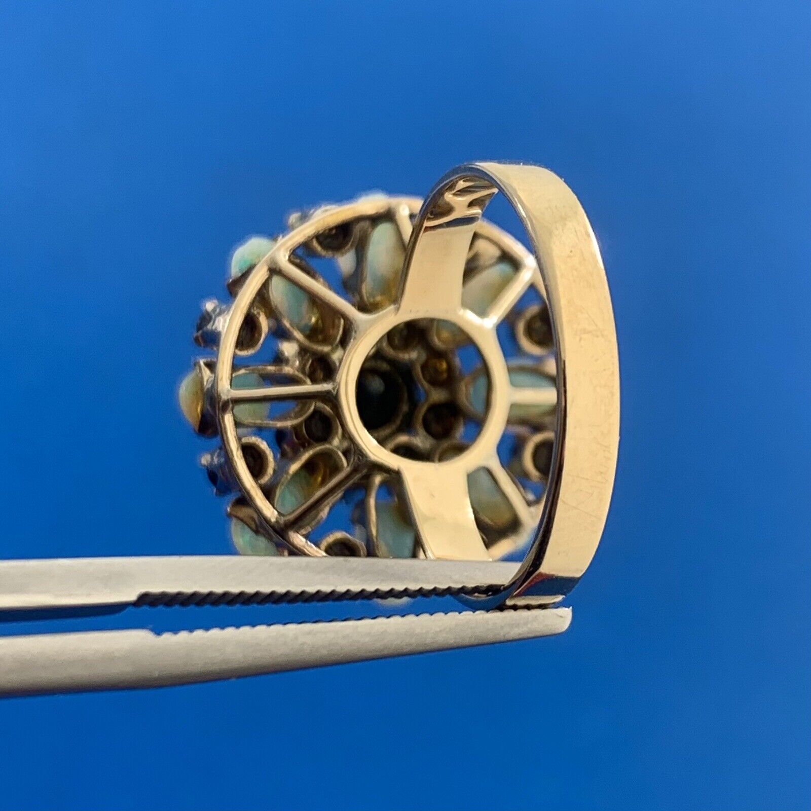 - Estate 14K Yellow Gold Sapphire Opal Princess Empire Stacked Dome Cocktail Ring