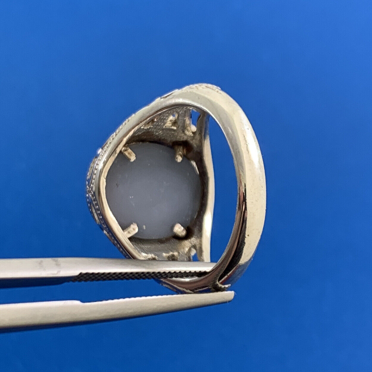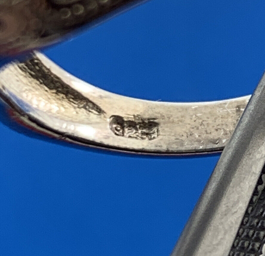 - Estate 925 Sterling Silver Drusy Quartz Scroll Open Work Cocktail Ring