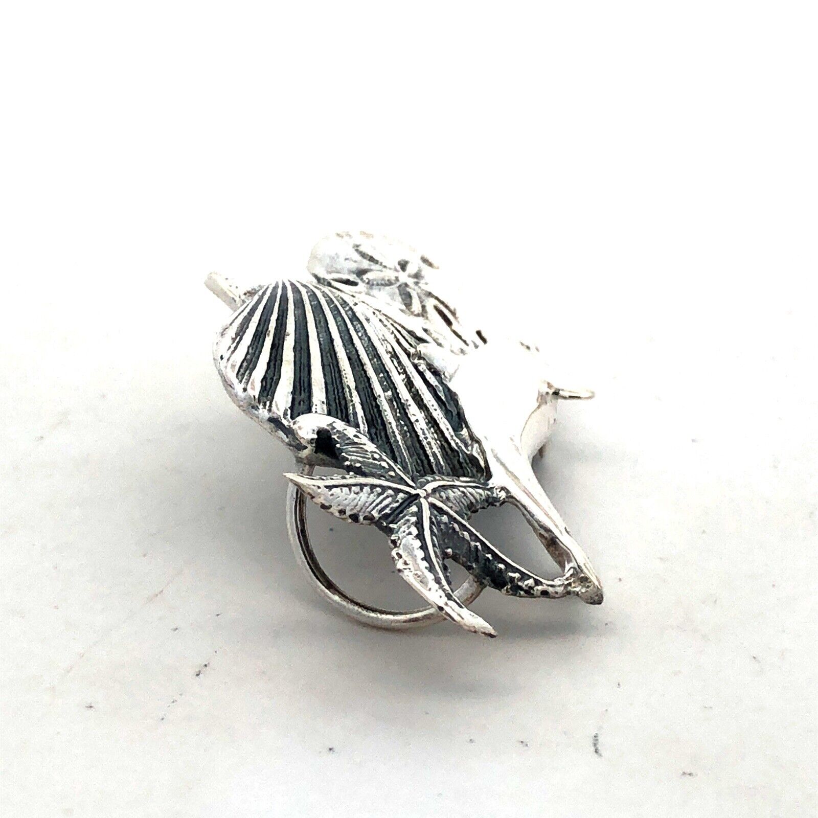 Estate 925 Sterling Silver Ocean Sea Dolphin Starfish Shell Beach Pendant