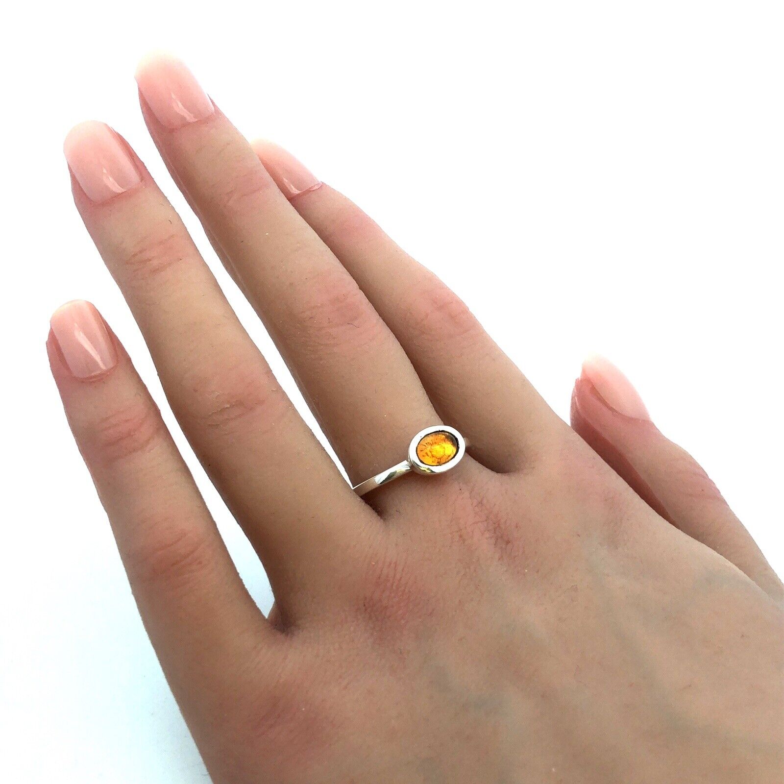 - Estate 925 Sterling Silver Oval Orange Tourmaline Bezel Solitaire Ring