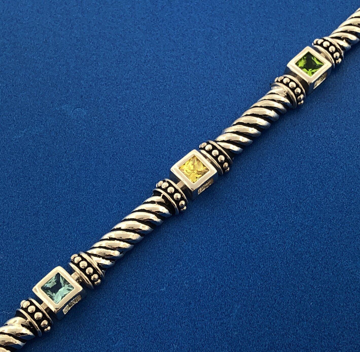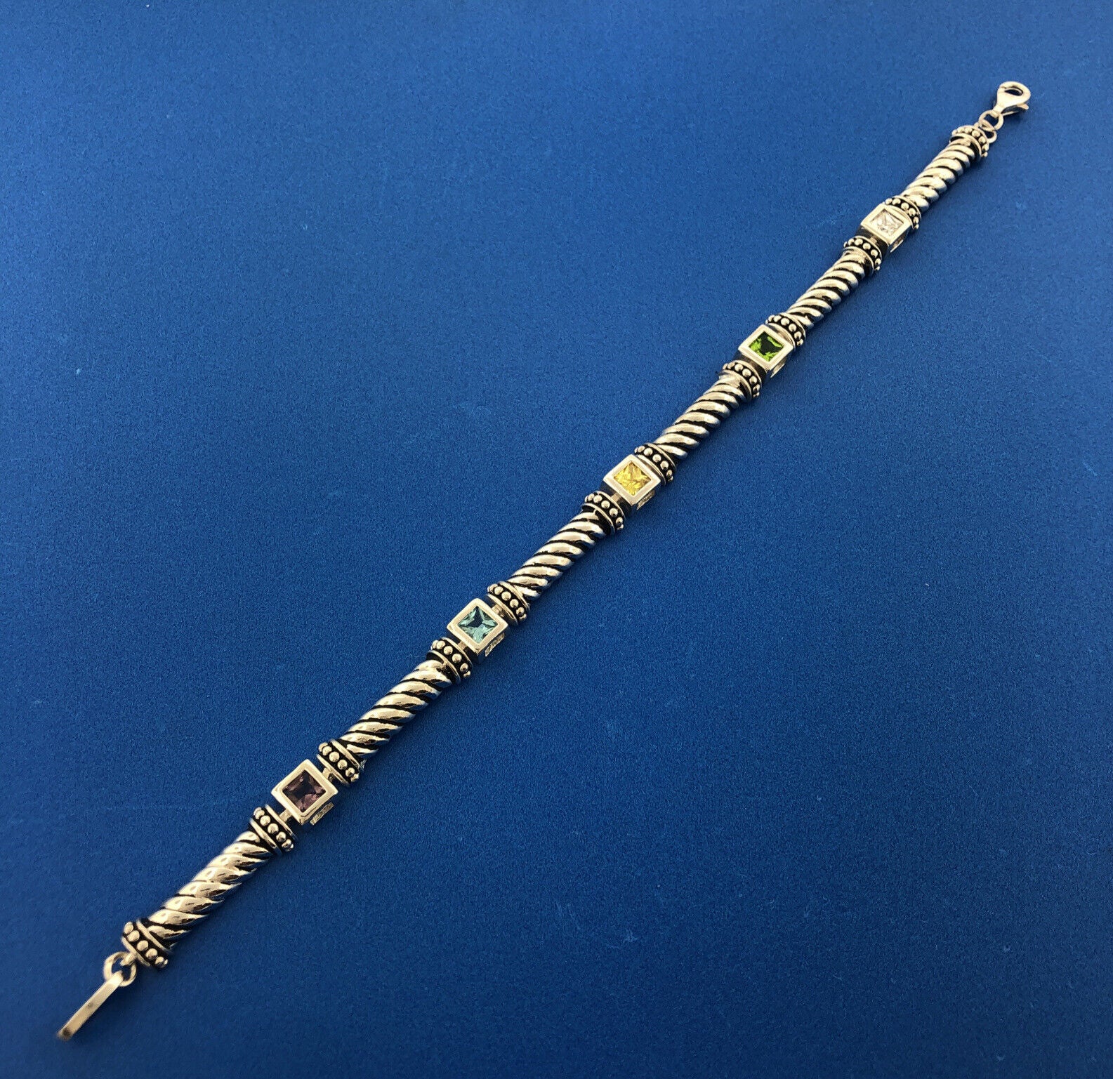 - Estate 925 Sterling Silver Princess Cut Multicolor Cubic Zirconia CZ Bracelet