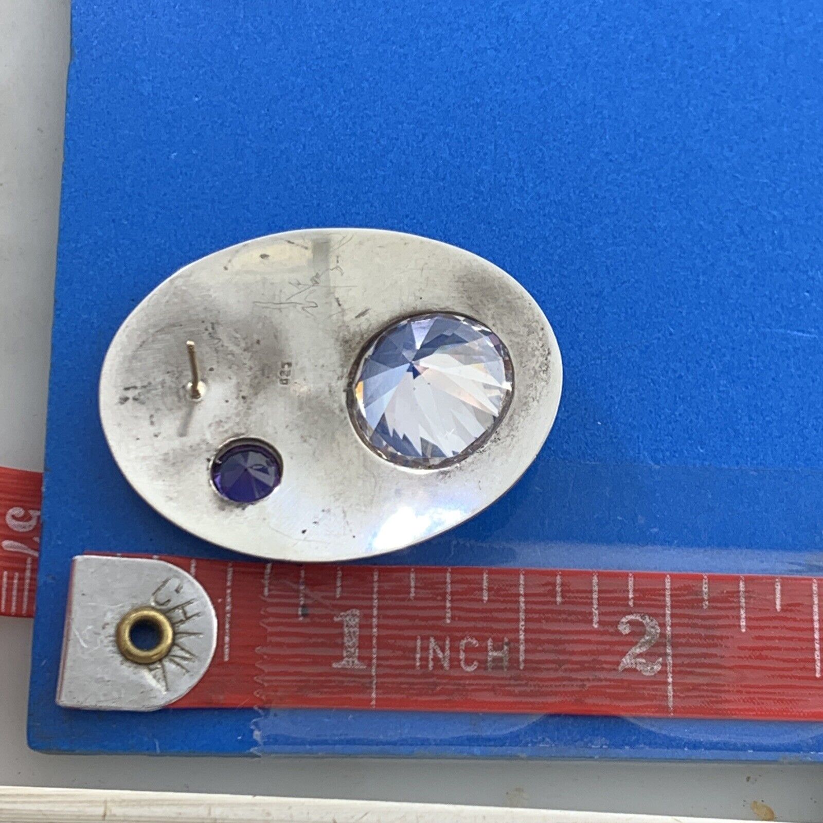 - Estate 925 Sterling Silver White Amethyst Purple Sapphire Oval Stud Earrings