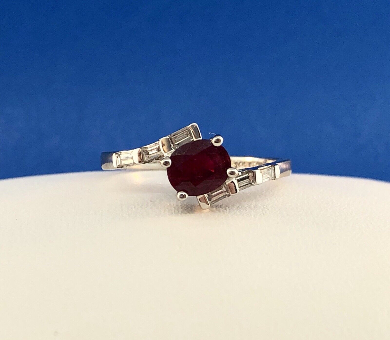 - Estate Designer 14K White Gold Ruby Diamond July Anniversary Bypass Ring