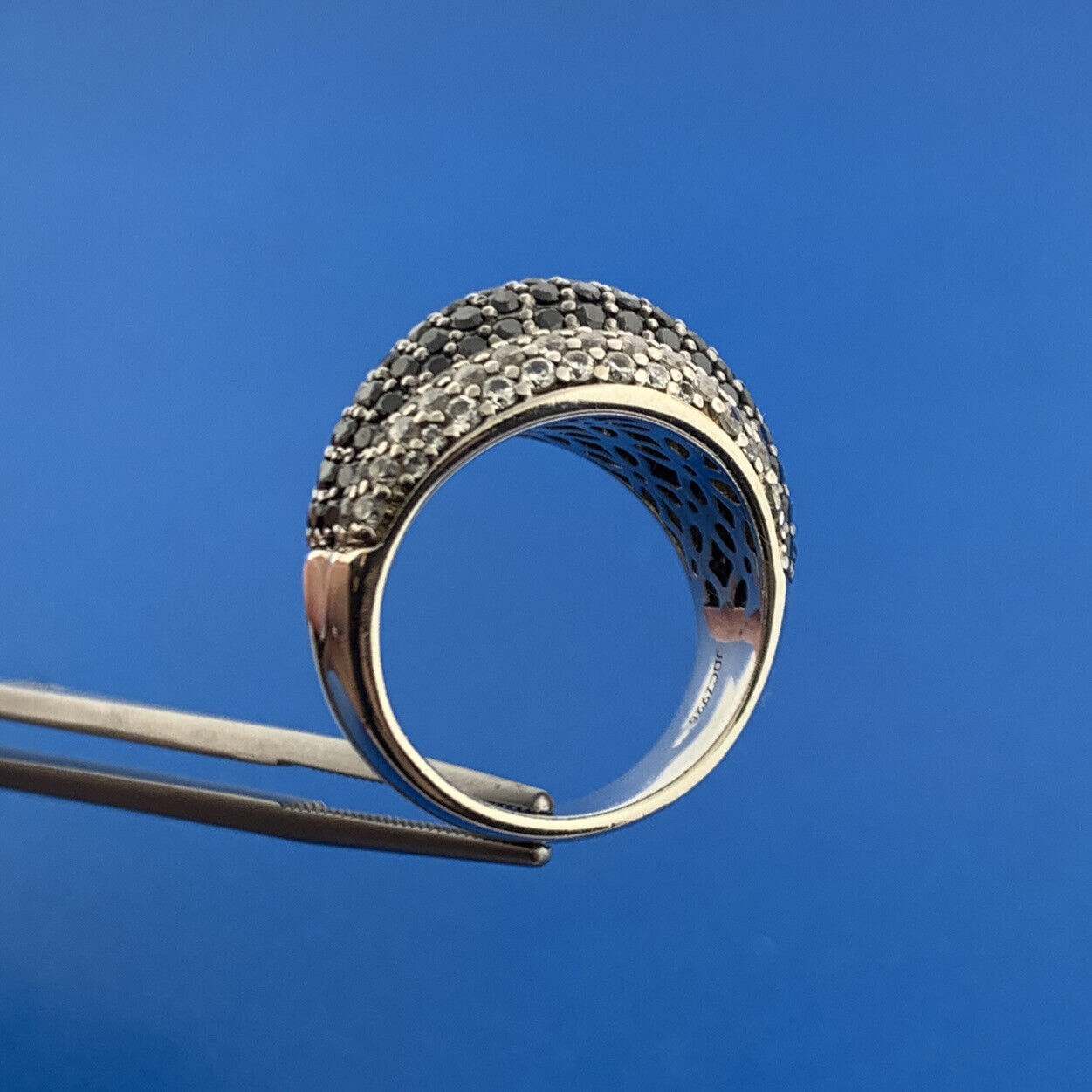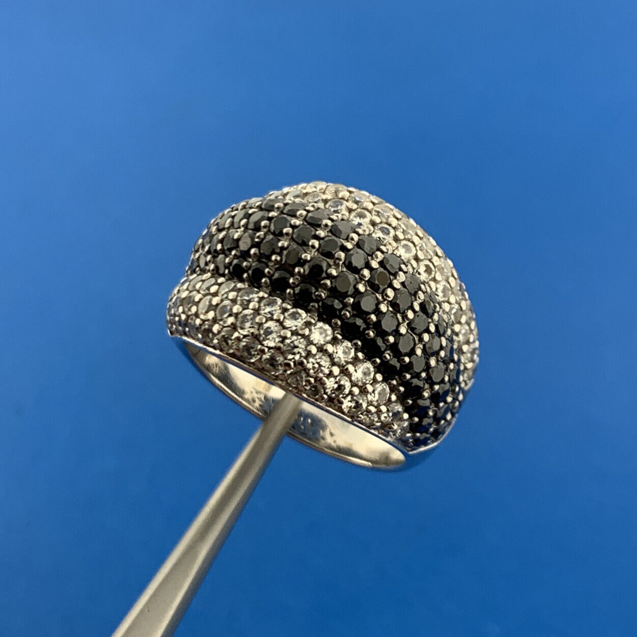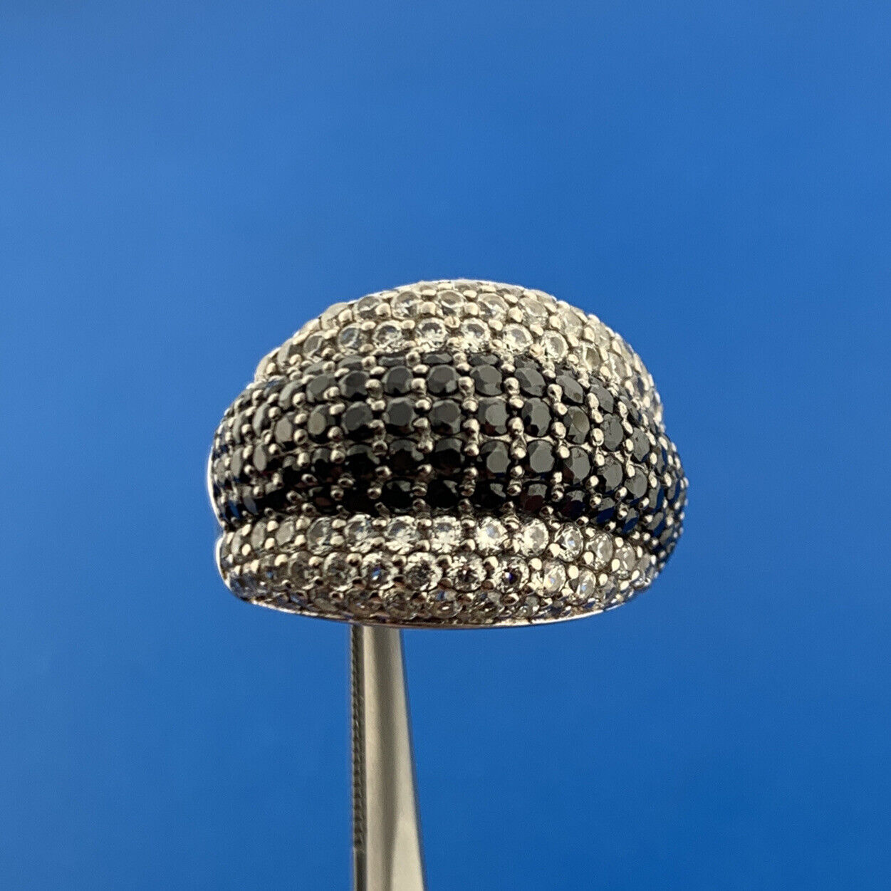 - Estate JD 925 Sterling Silver Pave Black White Cubic Zirconia Dramatic Dome Ring