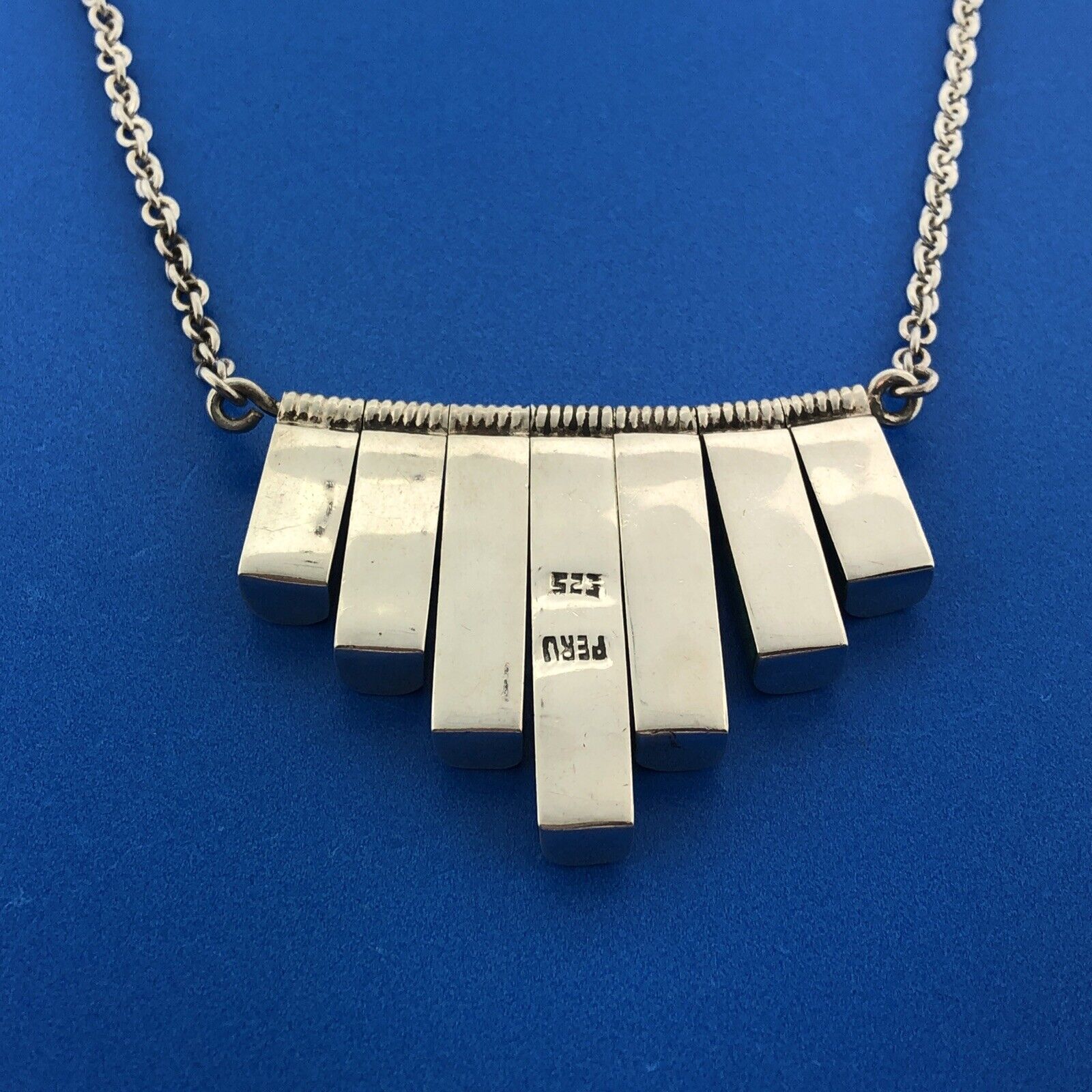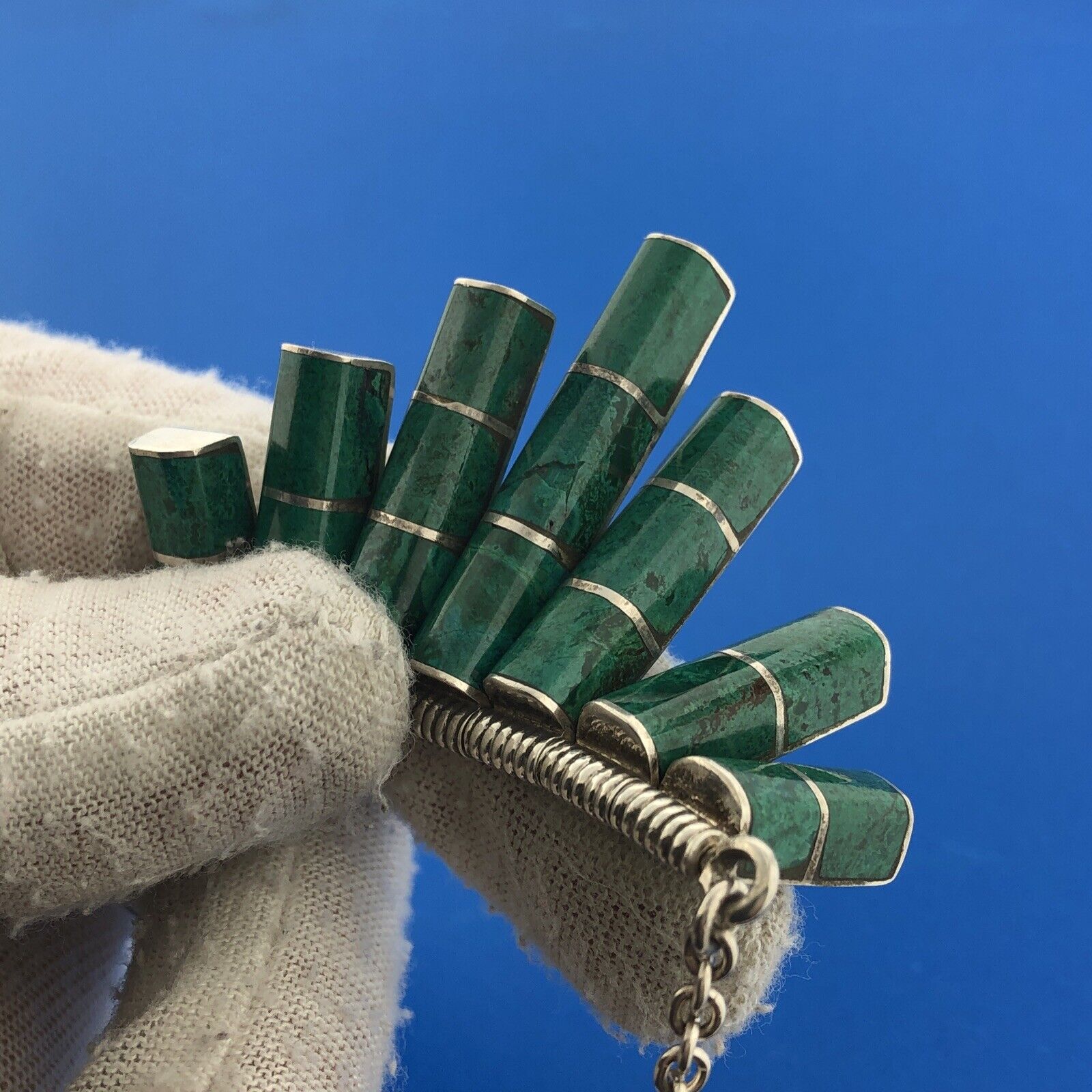 Estate Modernist 925 Sterling Silver 925 Malachite Abstract Statement Necklace
