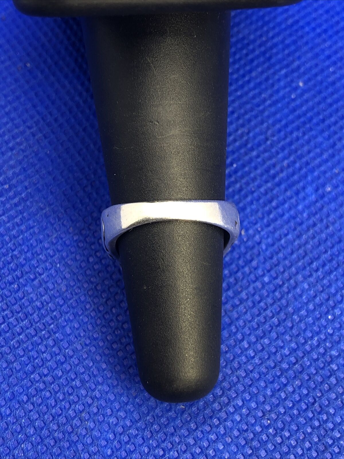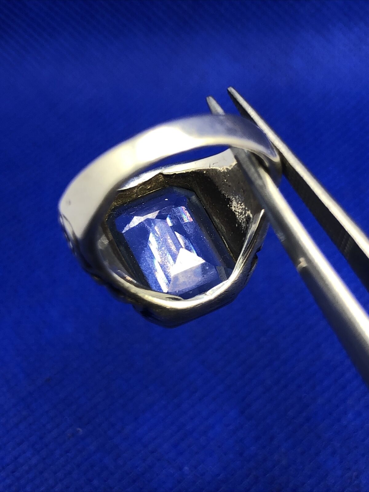 - Estate Sterling Silver Emerald Cut Blue Topaz Scroll Floral Vine Cocktail Ring