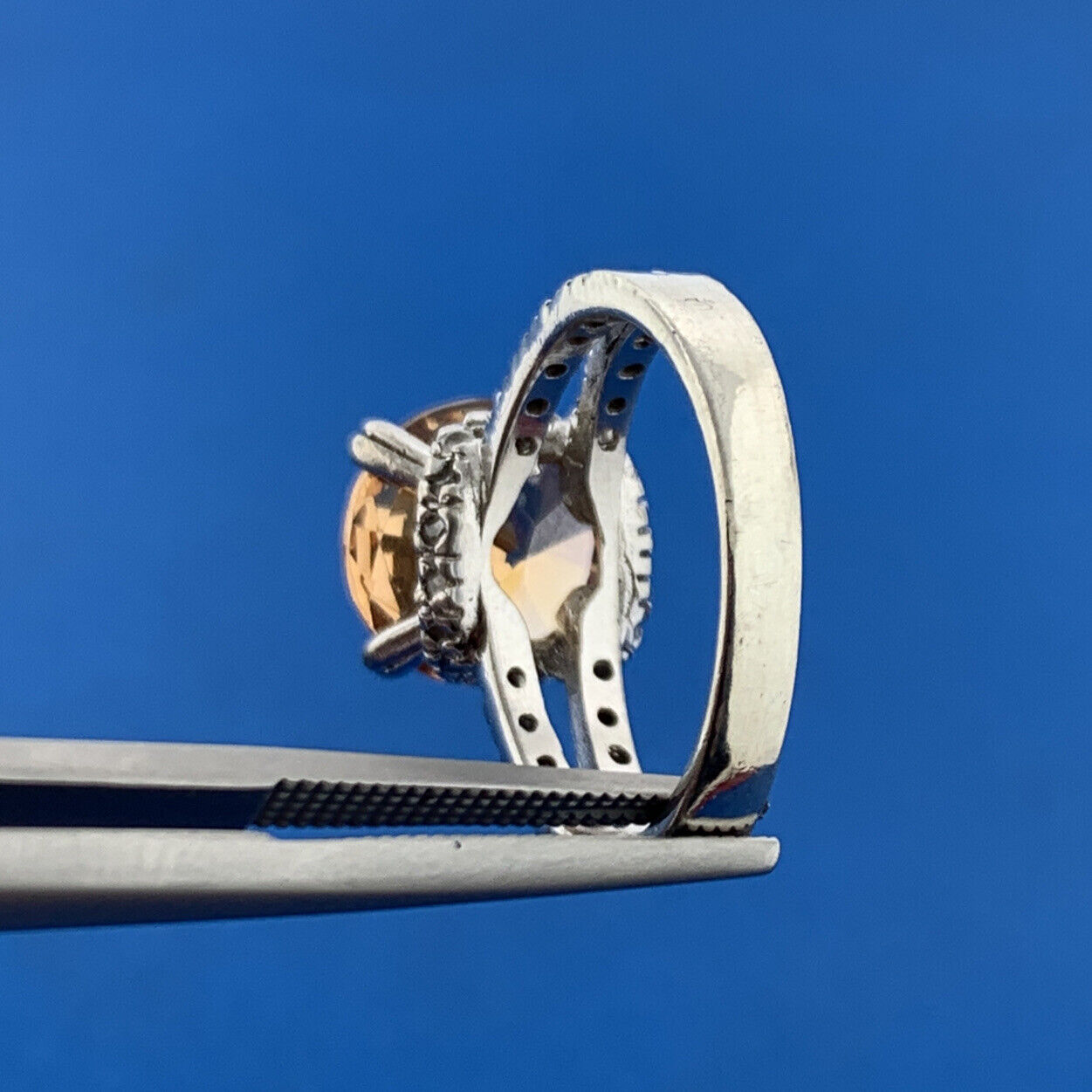 Estate Sterling Silver Orange White Cubic Zirconia CZ Statement Cocktail Ring