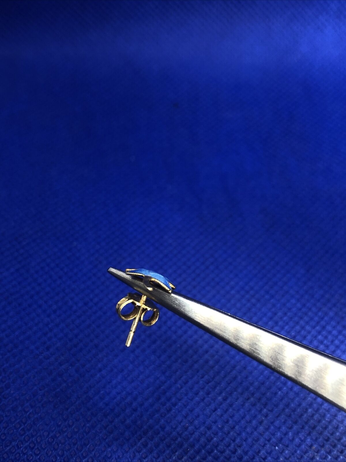 - Estate Vermeil 925 Sterling Silver Blue Enamel Leaf Nature Stud Earrings