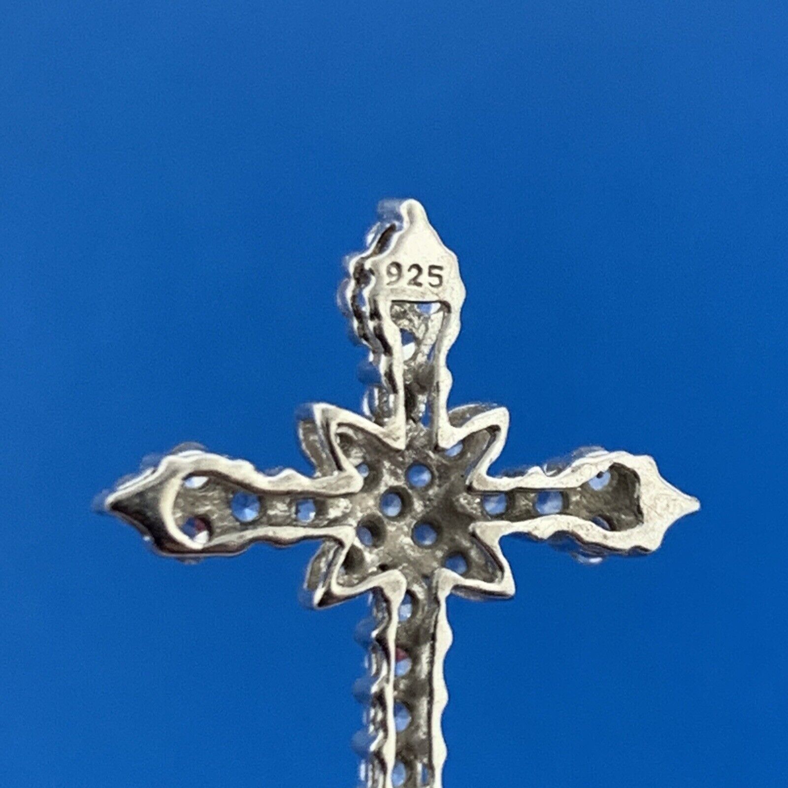 Exquisite 925 Sterling Silver Diamond Cross Religious Communion Easter Pendant