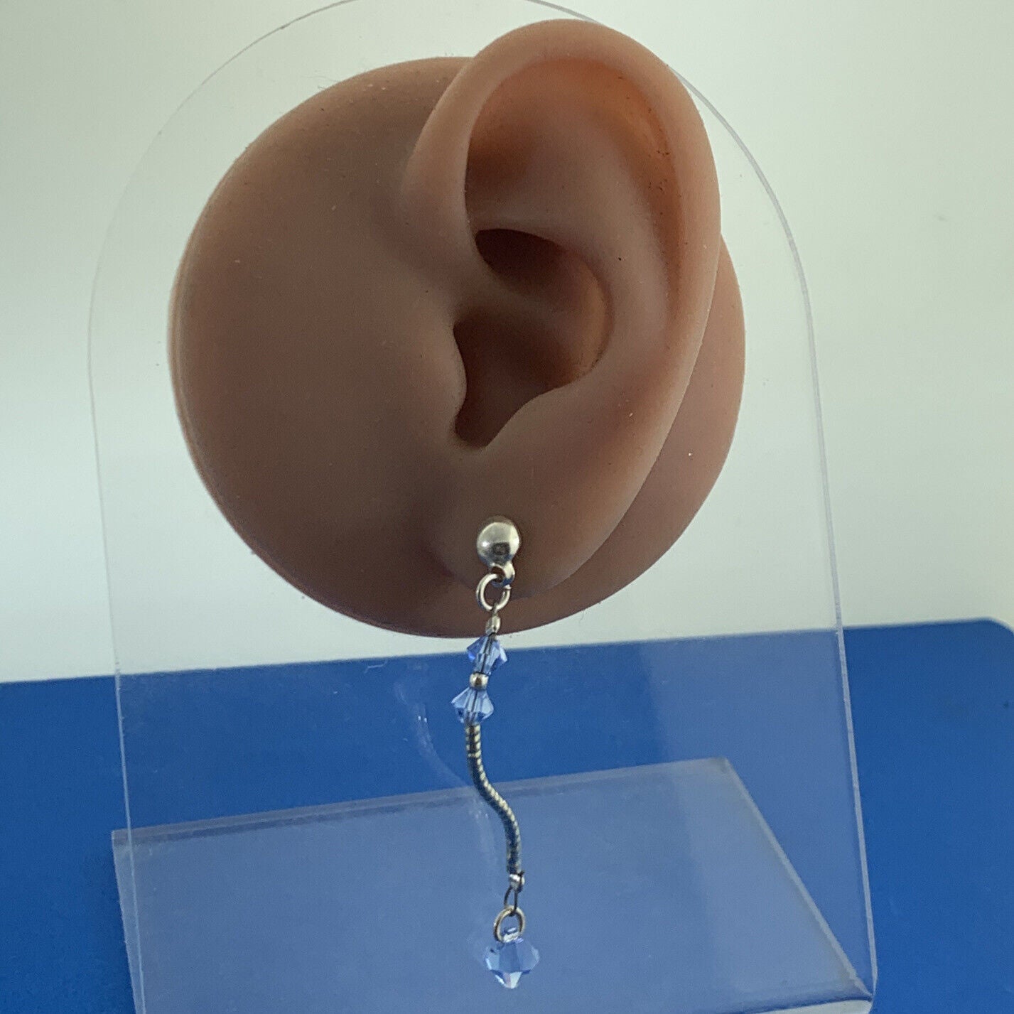 Fabaro 925 sterling silver blue glass bead dangle stud earrings