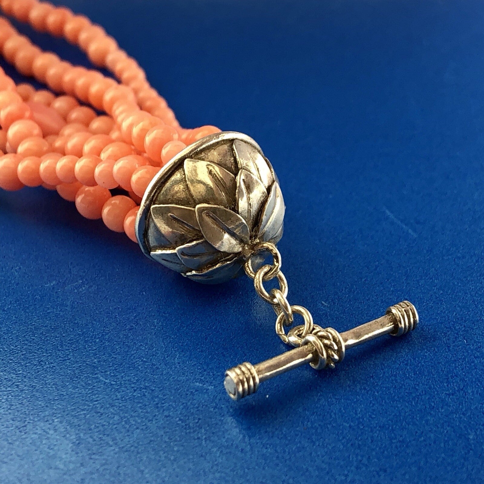 - Fantastic Sterling Silver 925 Coral Silver Bead 7 Strand Statement Necklace