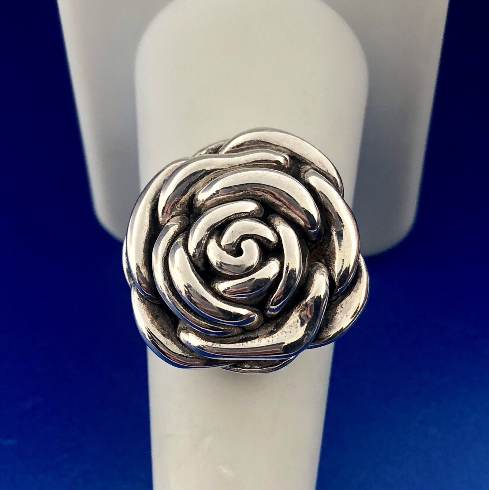 - Fun 925 Sterling Silver Textured Rose Camellia Flower Statement Ring