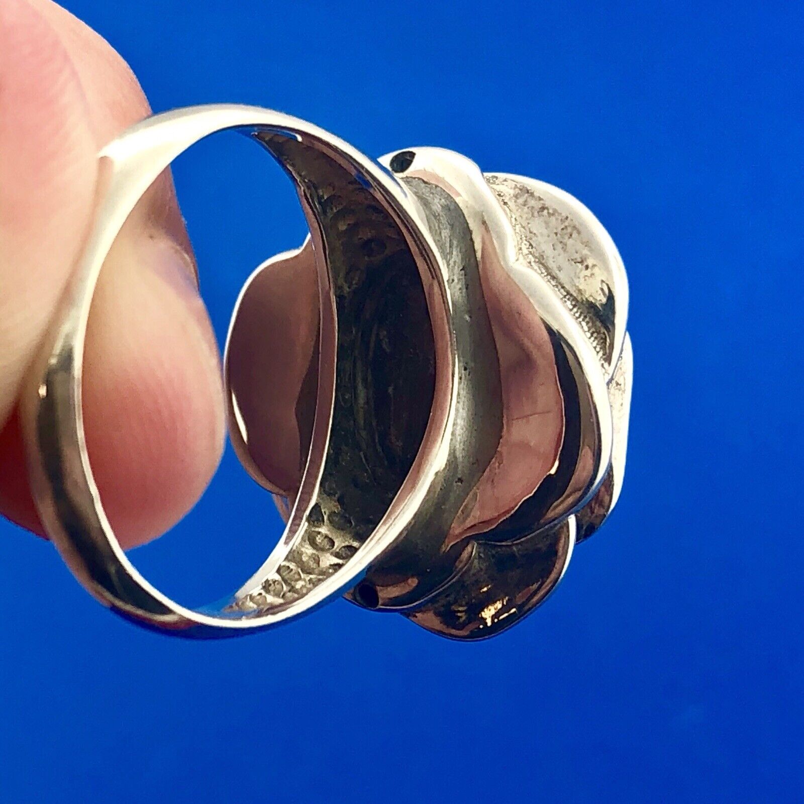 Fun 925 Sterling Silver Textured Rose Camellia Flower Statement Ring