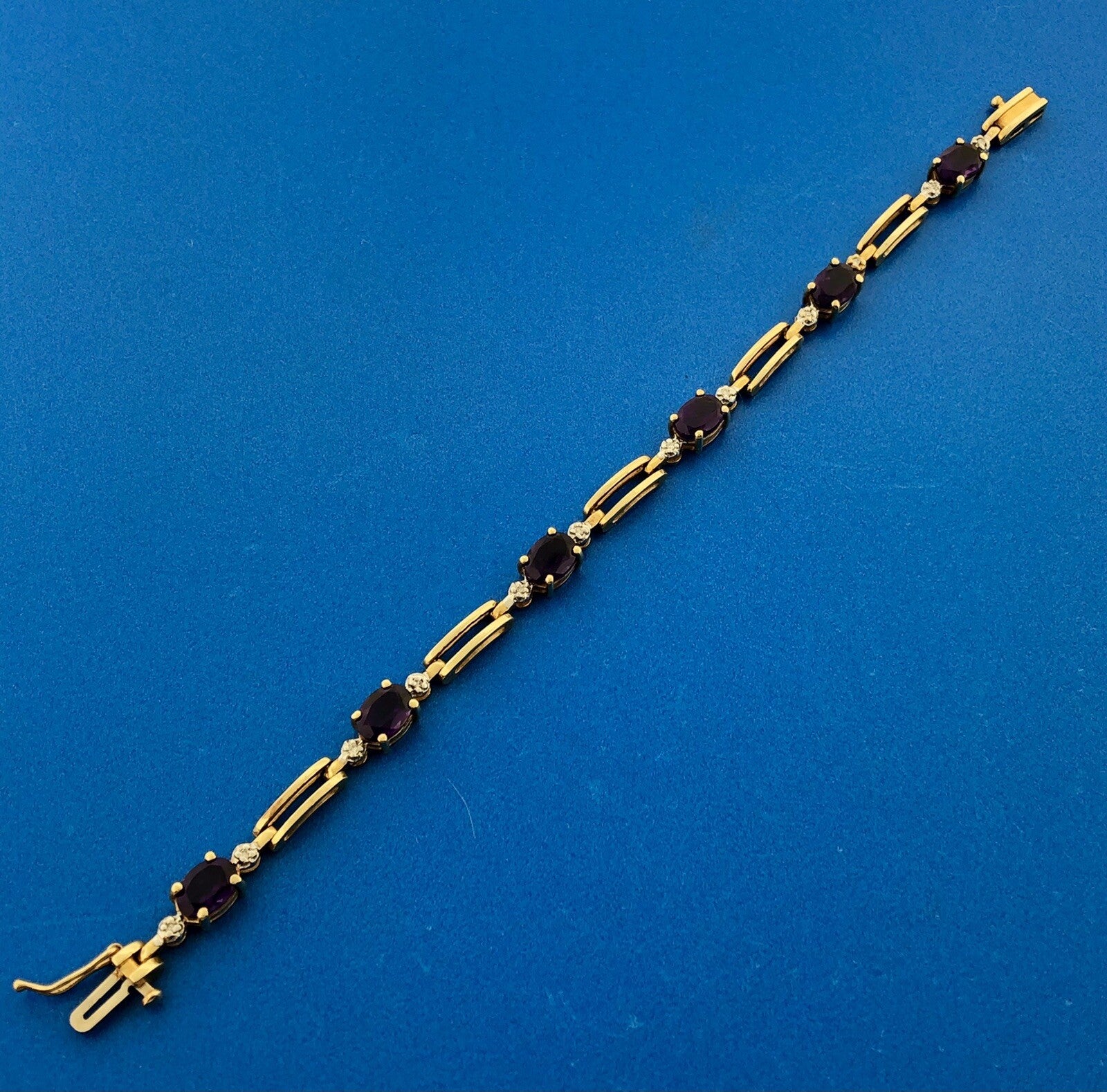 - Gorgeous 10k Yellow Gold Oval Cut Purple Amethyst Diamond 6" Tennis Bracelet