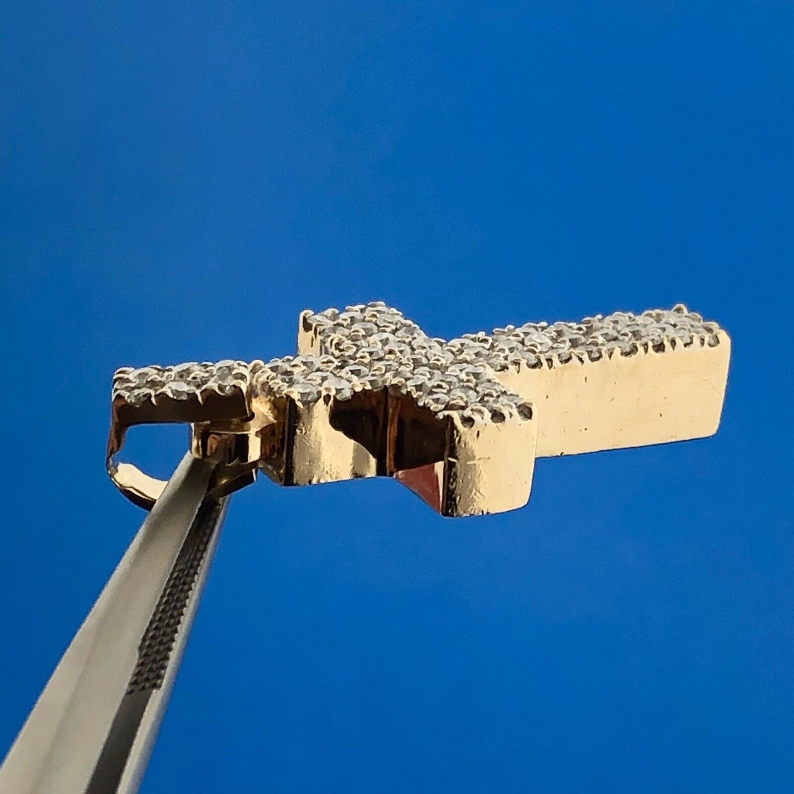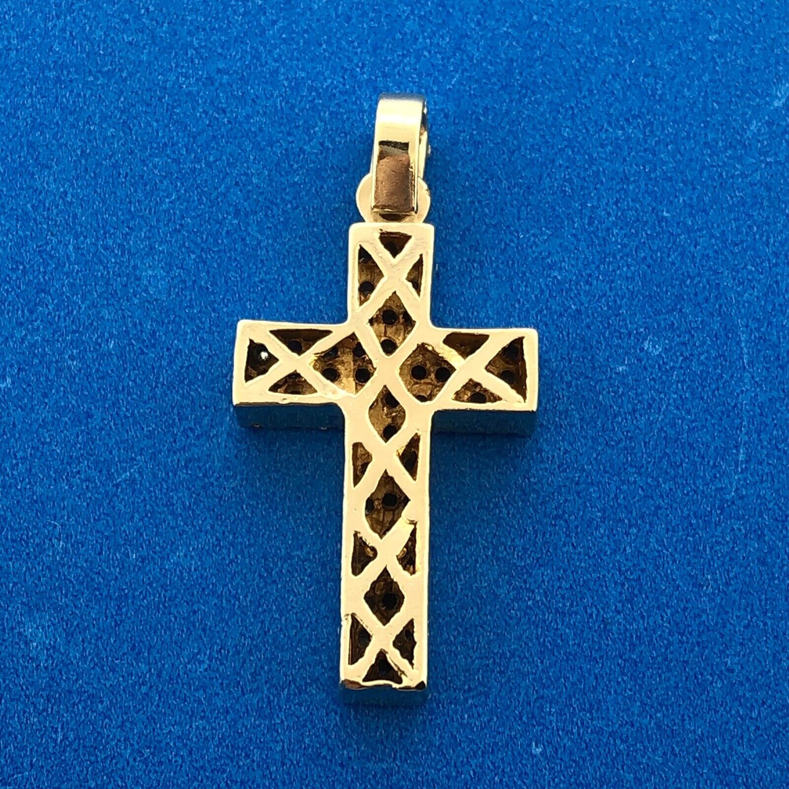 - Gorgeous 10k Yellow Gold Round Cut Diamond Religious Faith Cross Dangle Pendant