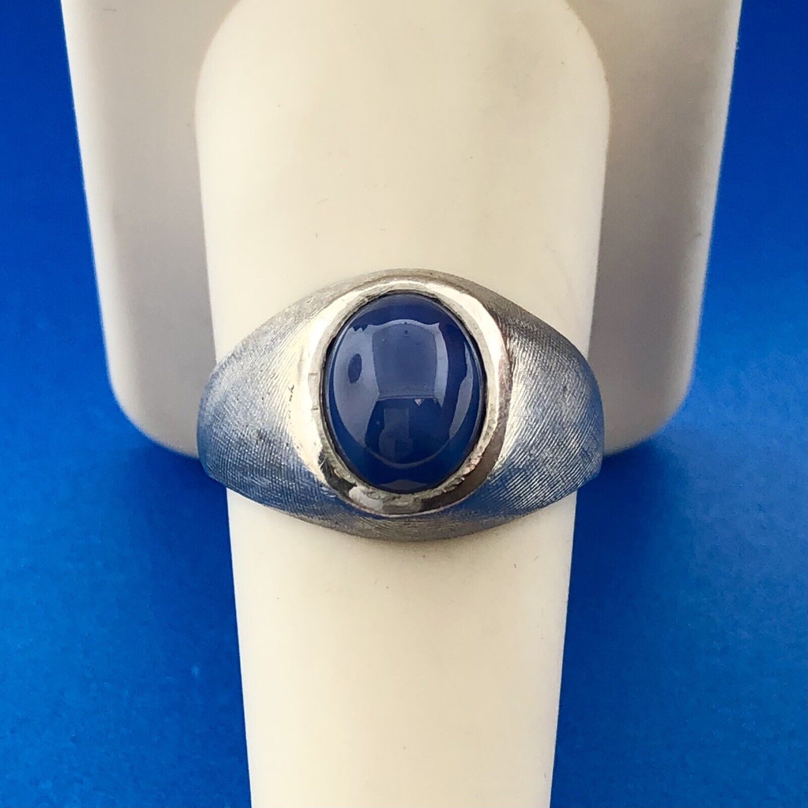 Gorgeous 14k White Gold Oval Cabochon Blue Star Sapphire Dome Size 8.75 Ring