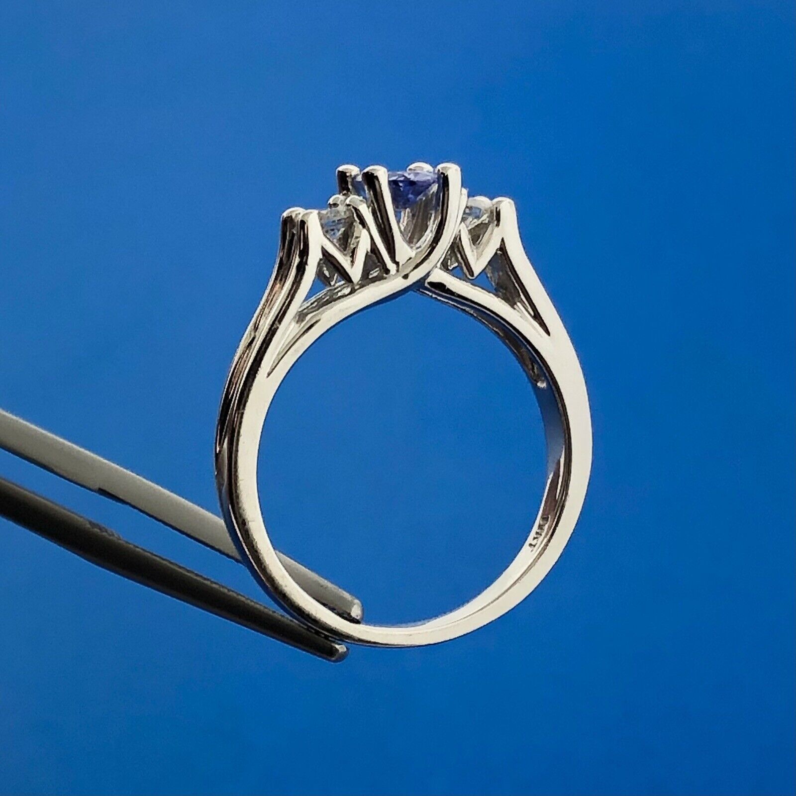 - Stone(s): (1) Oval Cut Tanzanite, (2) Round Cut Diamond