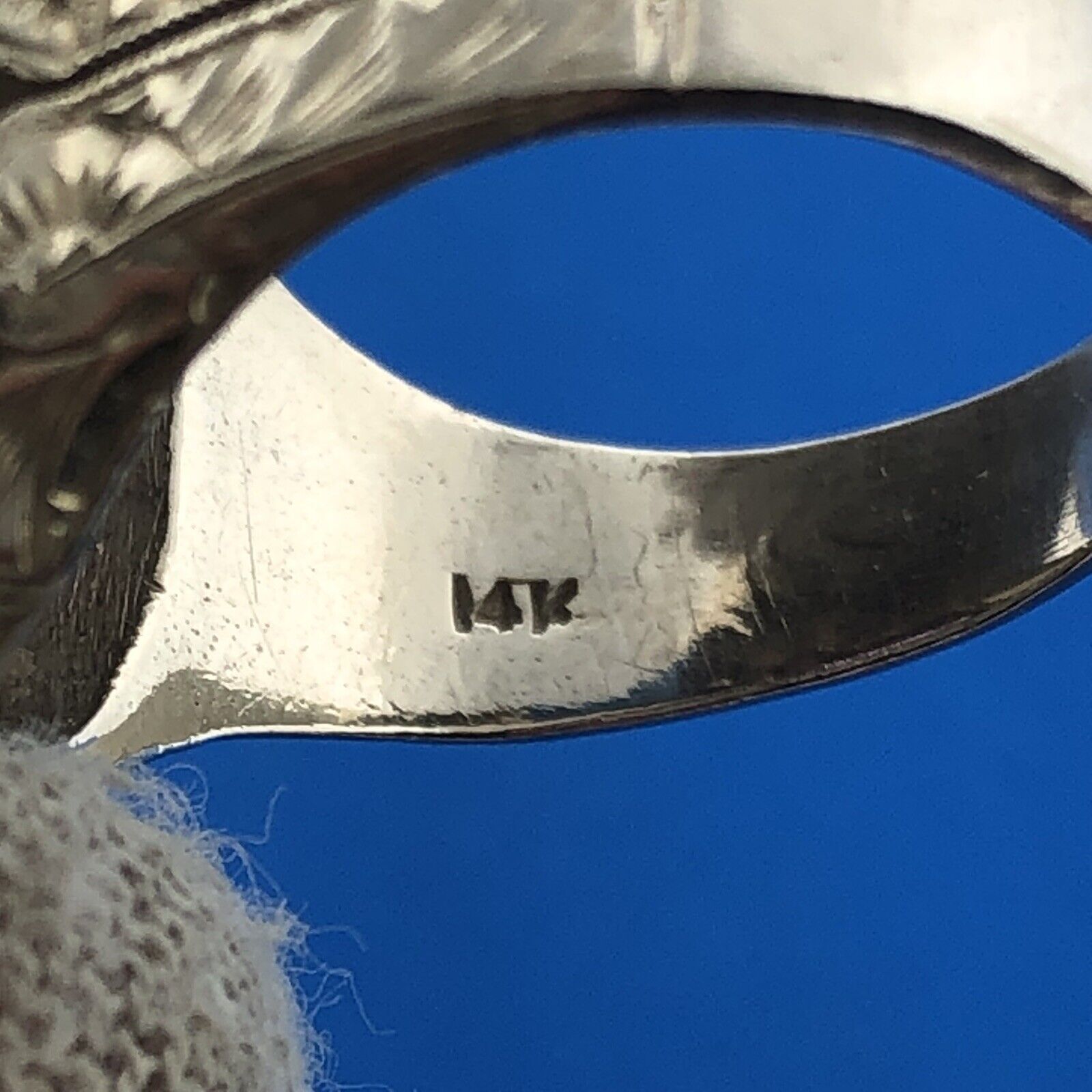 Gorgeous 14k White Gold Radiant Purple Amethyst Floral Pedestal Ring Size 8.25