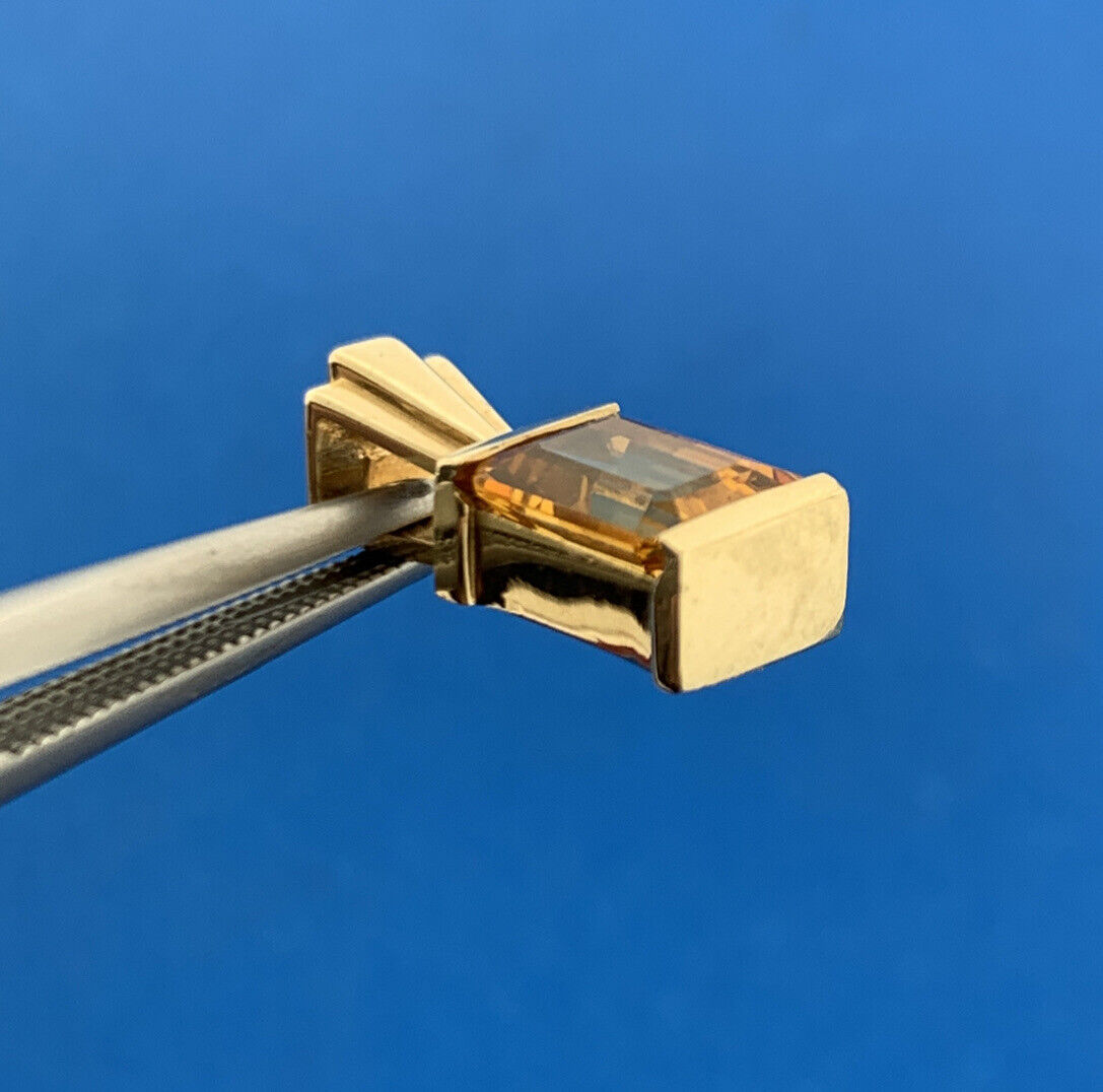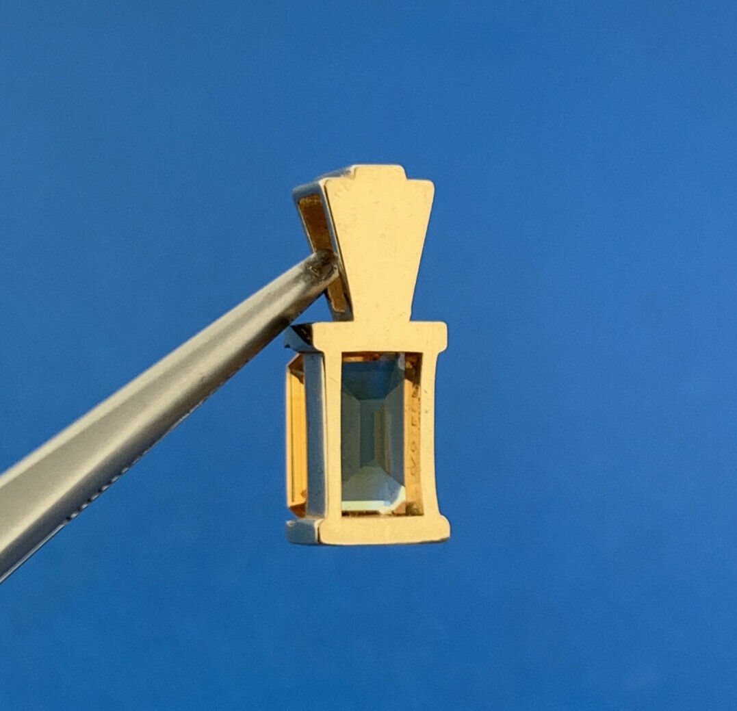 Gorgeous 14k Yellow Gold Emerald Cut Golden Citrine Precious Pendant Modern
