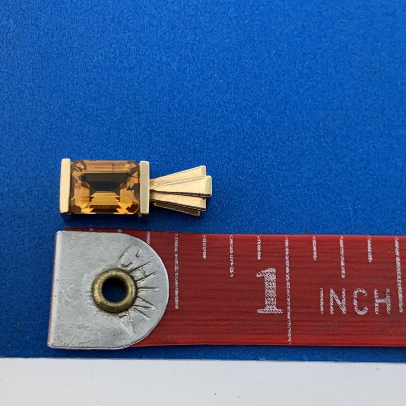 - Gorgeous 14k Yellow Gold Emerald Cut Golden Citrine Precious Pendant