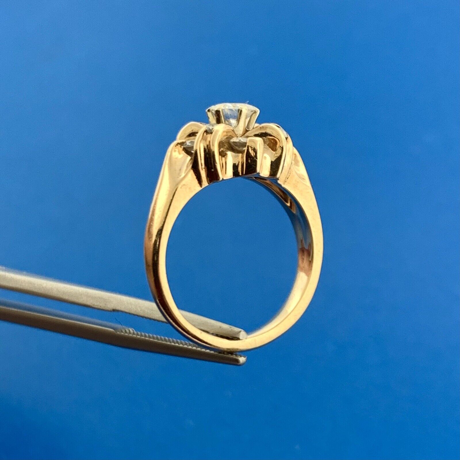 - Gorgeous 14k Yellow Gold Round Cut Diamond Multi-Level X Cluster Ring Size 5.5