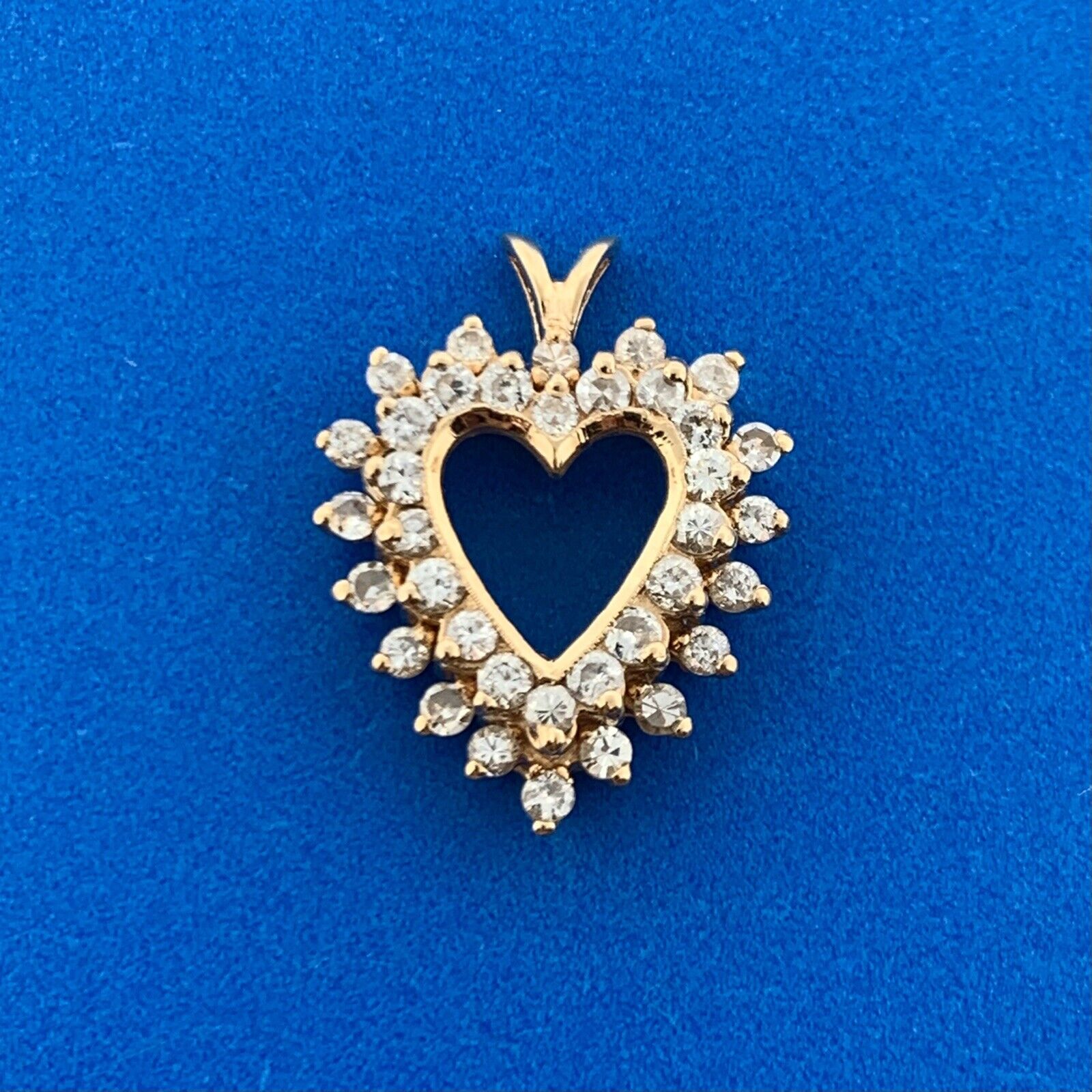 - Gorgeous 14k Yellow Gold Round Cut Diamond Open Heart Loving Romance Pendant