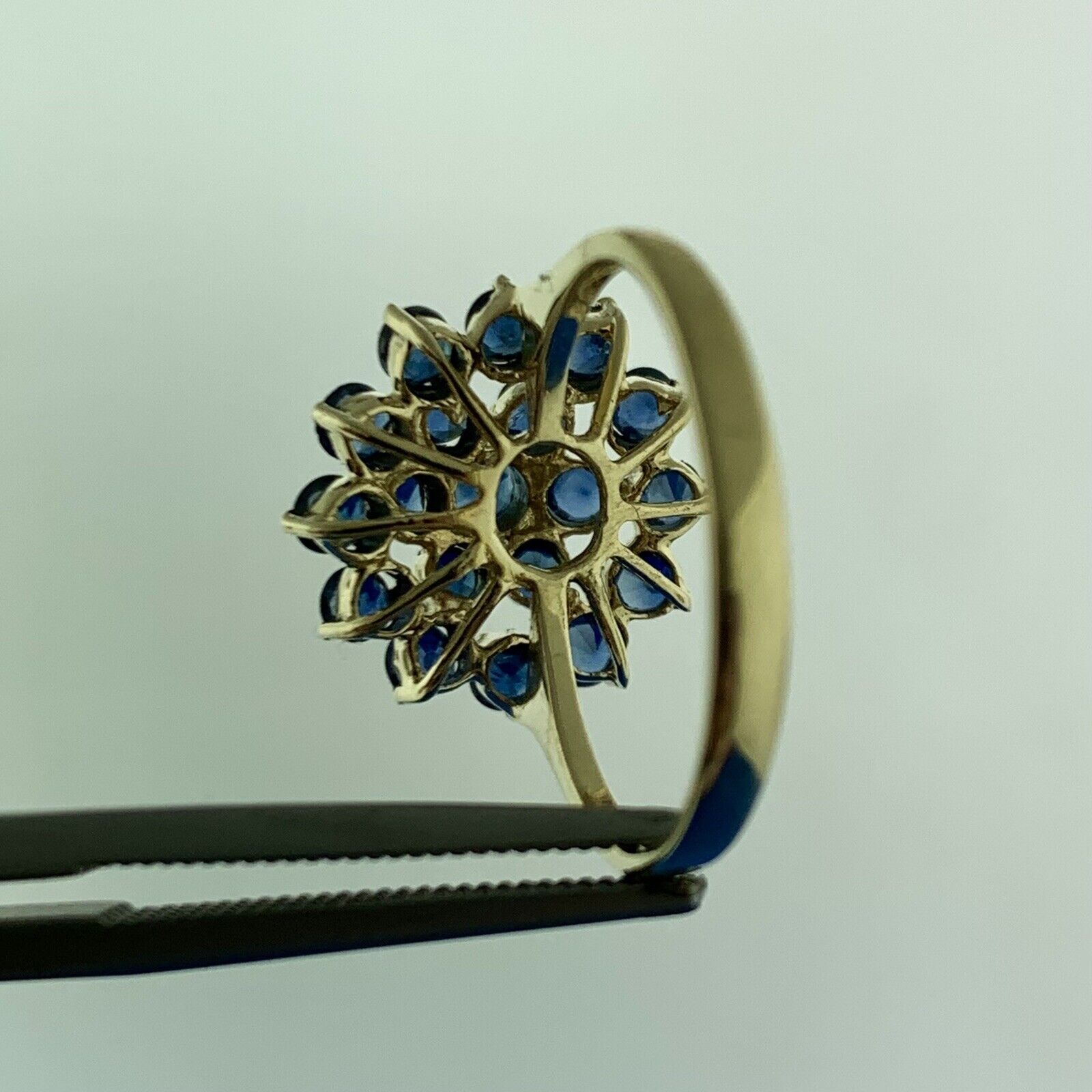 Gorgeous 14k Yellow Gold Round Cut Indigo Spinel Circle Cluster Ring Size 6.25