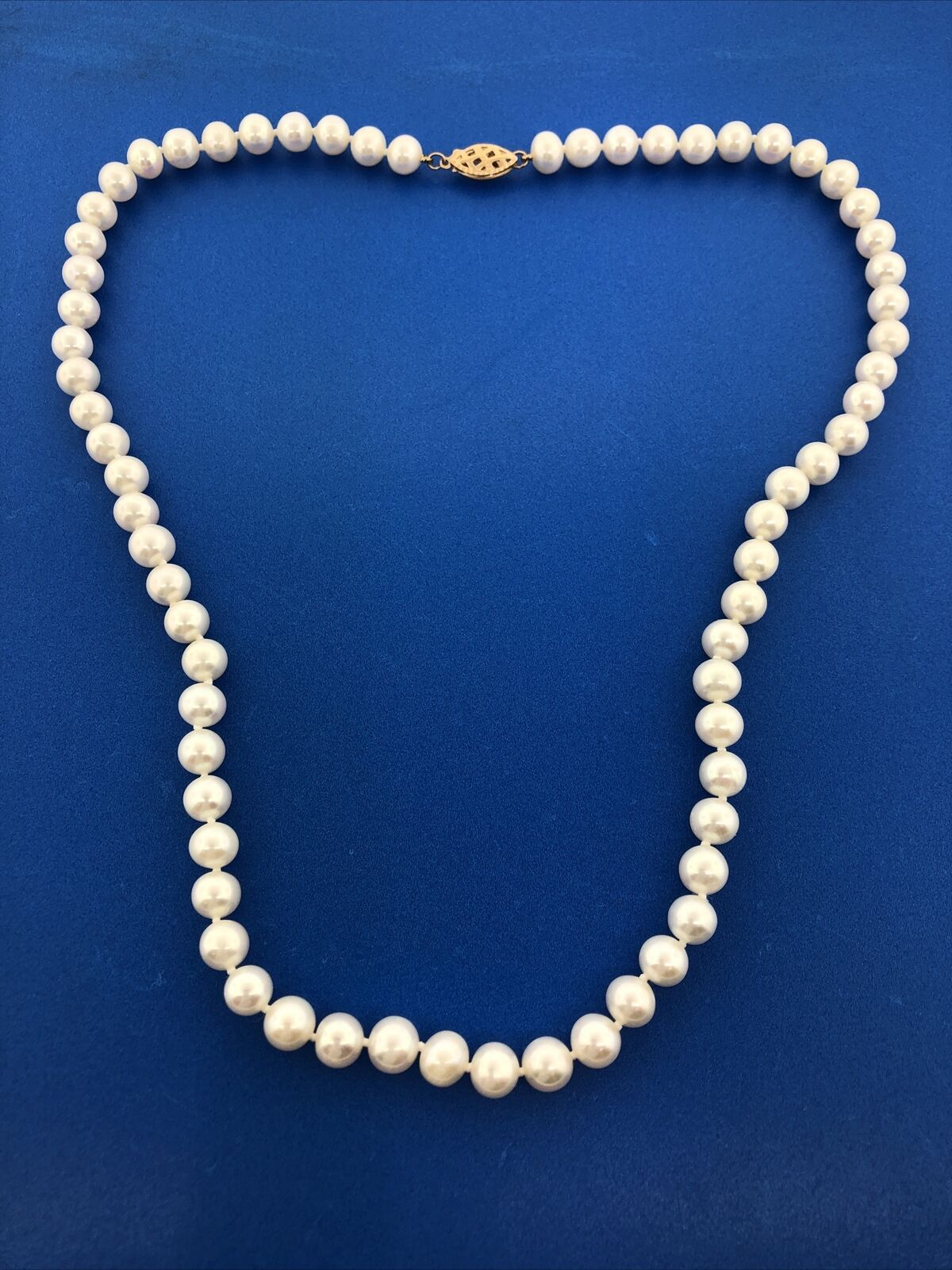 - Gorgeous 14k Yellow Gold White 6.85mm Pearl 18" Strand String Necklace