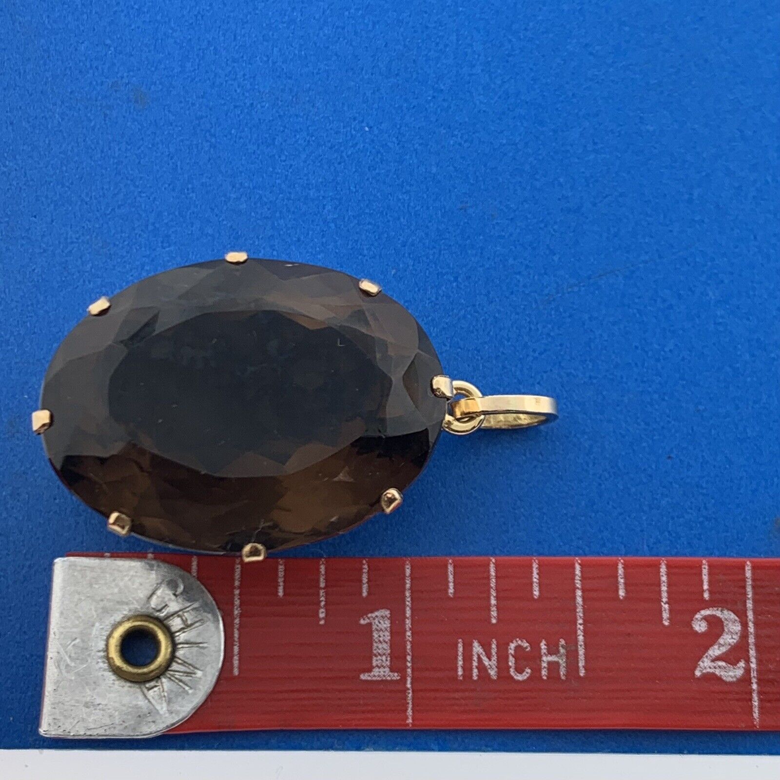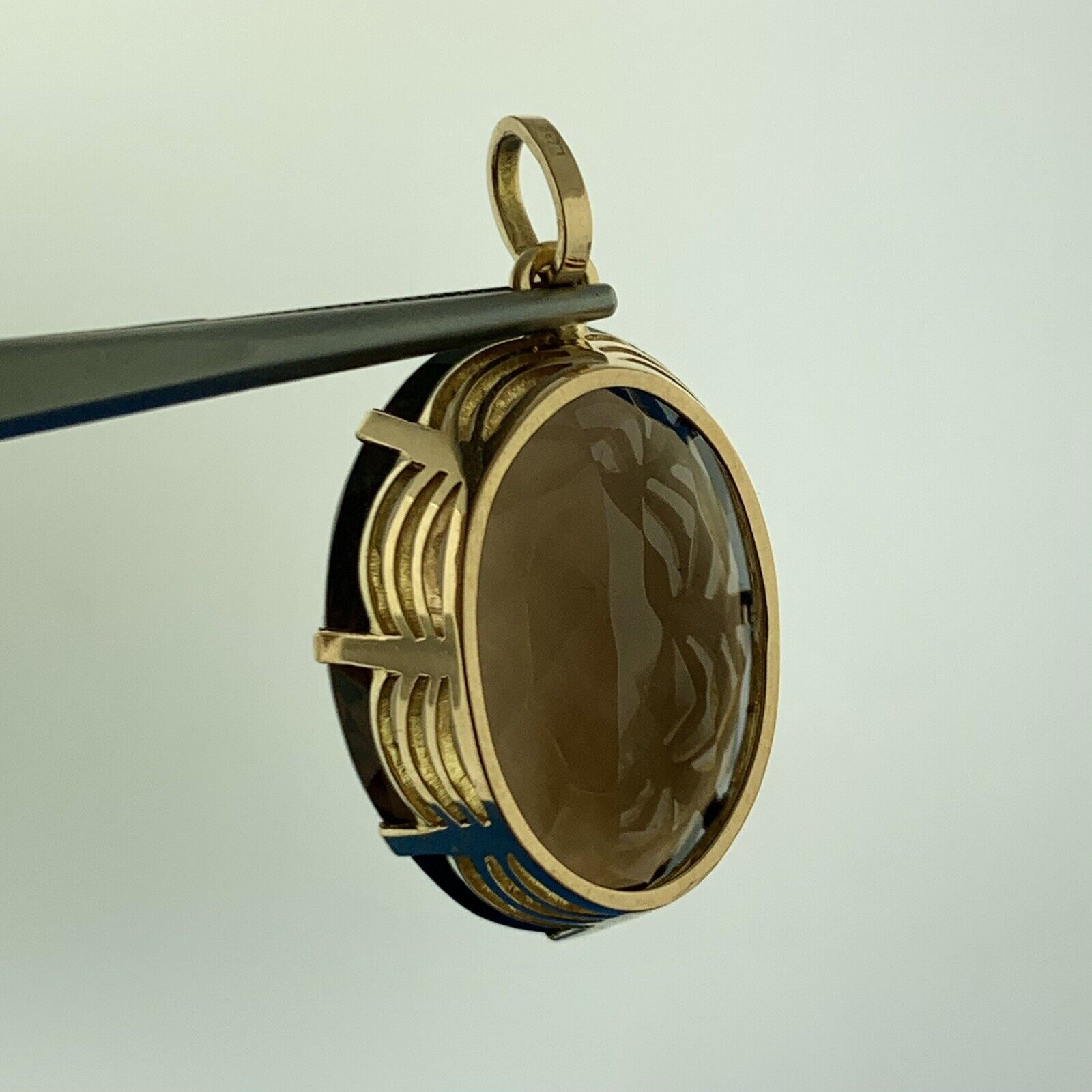 - Gorgeous 18k Yellow Gold Large Oval Cut Smoky Quartz Dangle Pendant