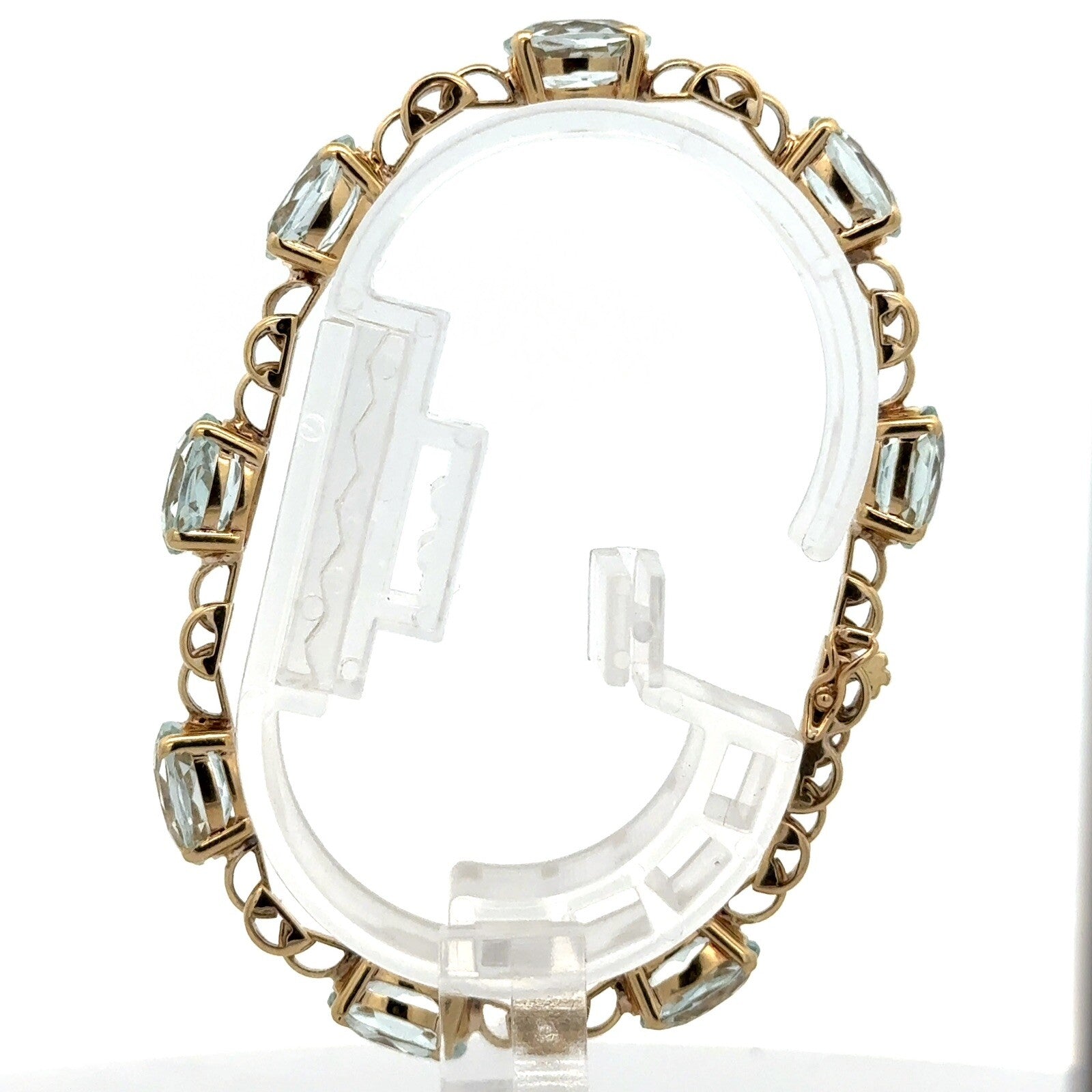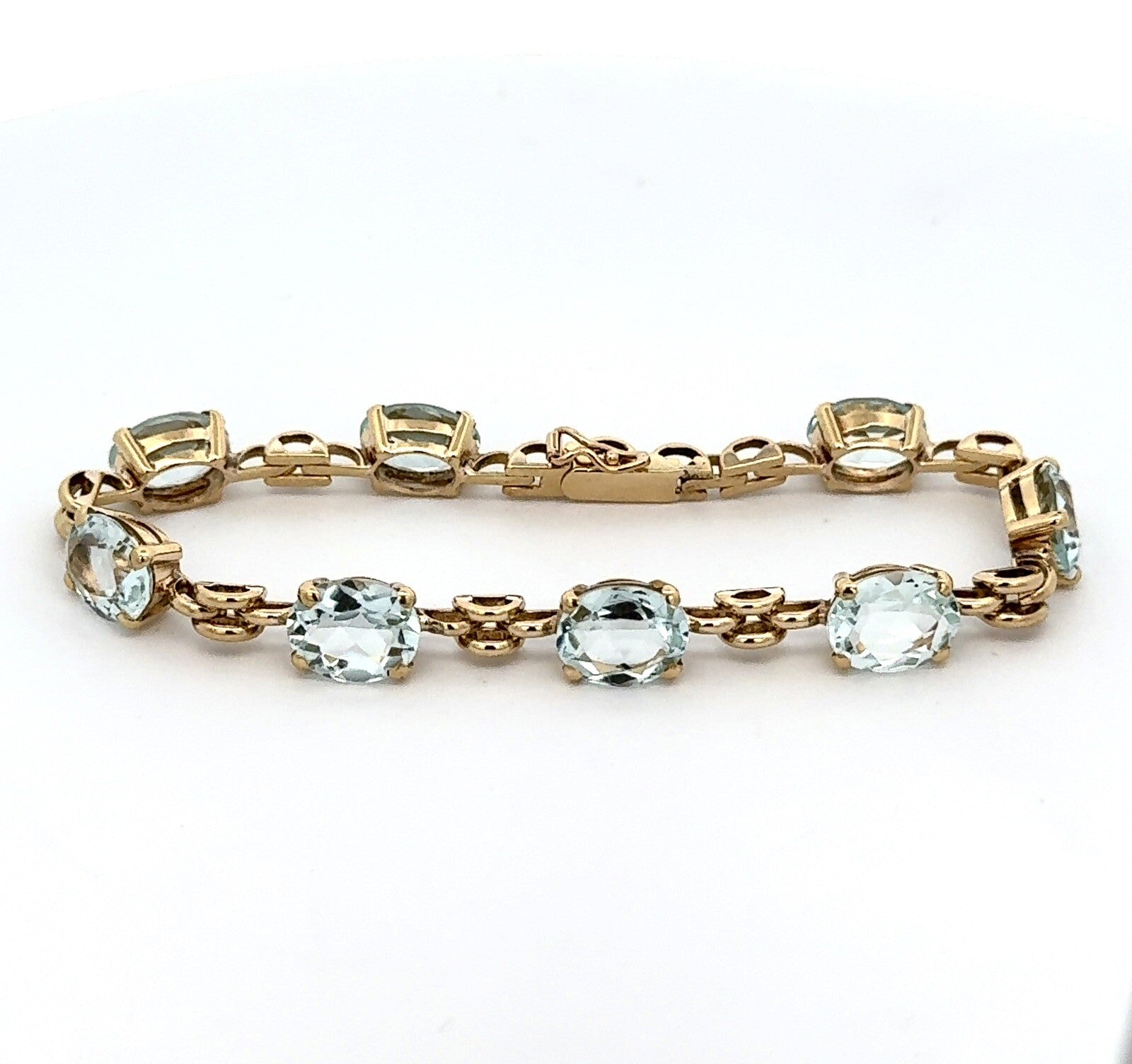 - Gorgeous 18k Yellow Gold Oval Aquamarine March Anniversary 7" Tennis Bracelet
