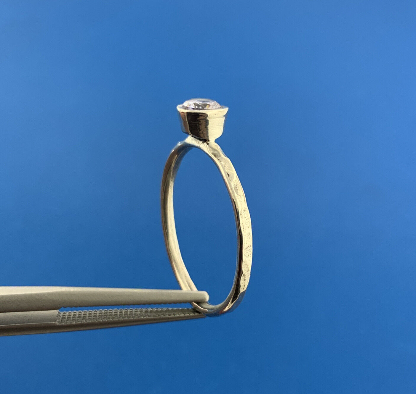 - Hammered Band Sterling Silver Amethyst Cubic Zirconia February Stackable Ring