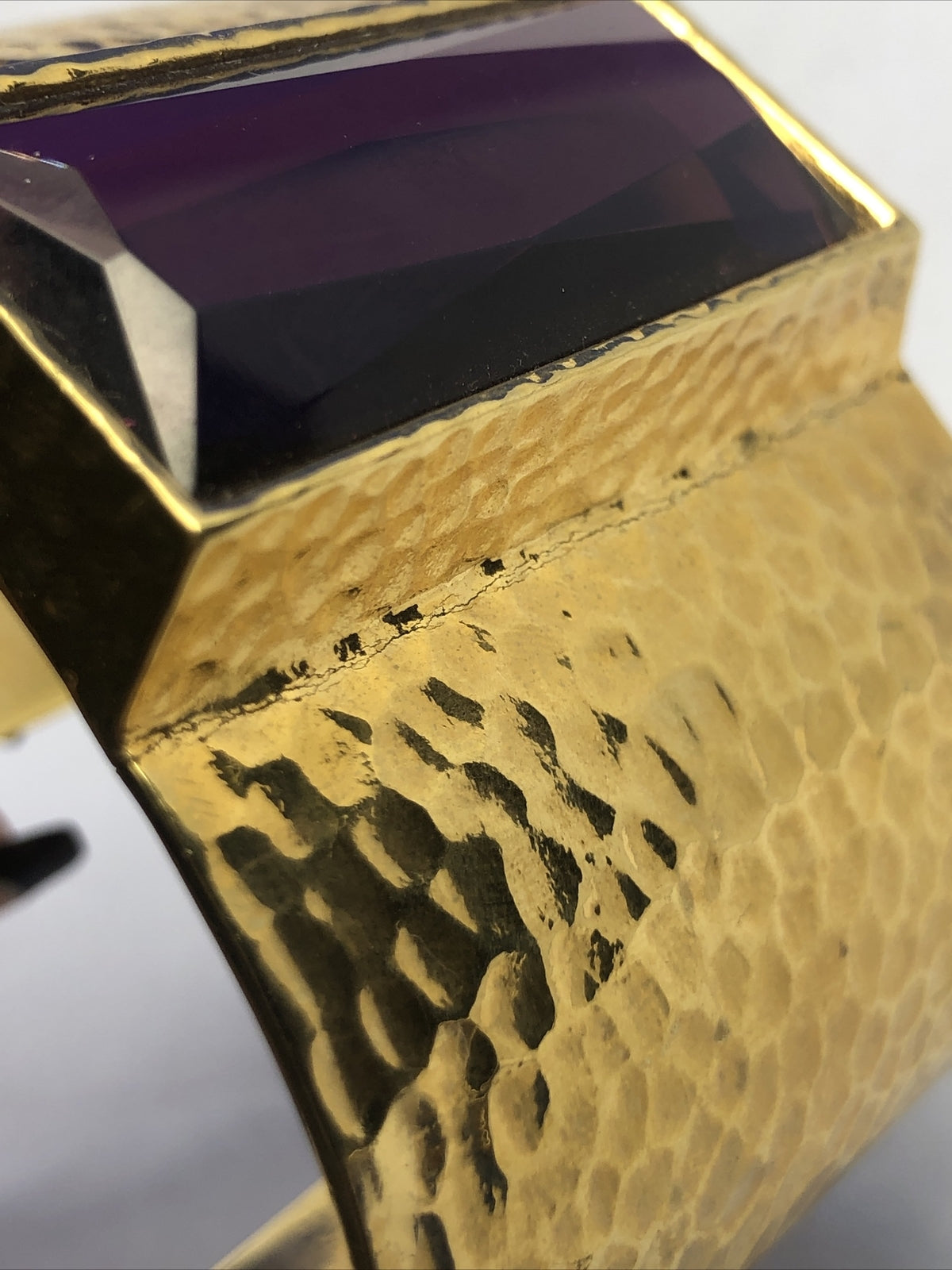 - IMAN CN Gold Tone Hammered Metal Purple Cubic Zircoina Statement Cuff Bracelet