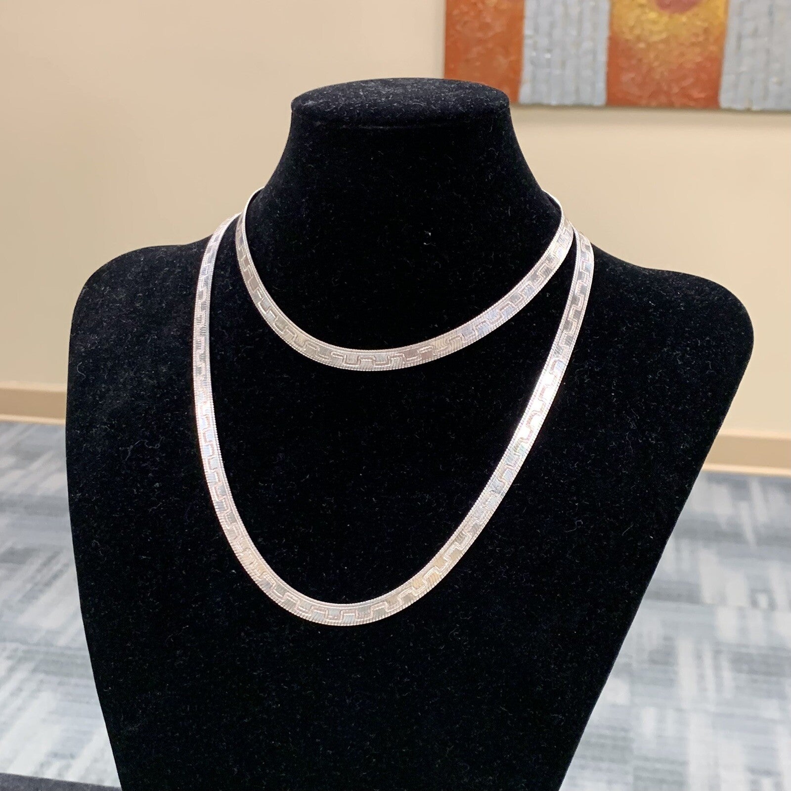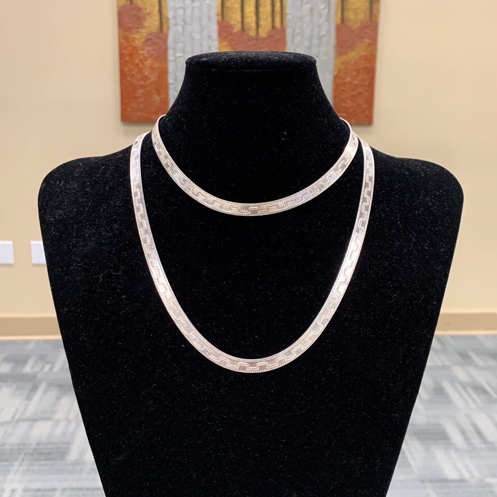 - Italian Designer Milor Sterling Silver 925 Herringbone Link 36" Chain Necklace