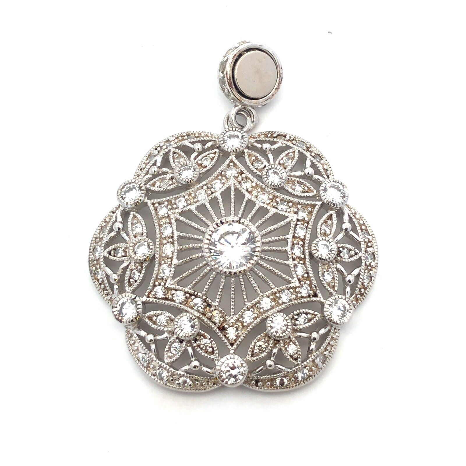 Joseph Esposito ESPO 925 Sterling Silver CZ Lacey Filigree Diamonique Pendant