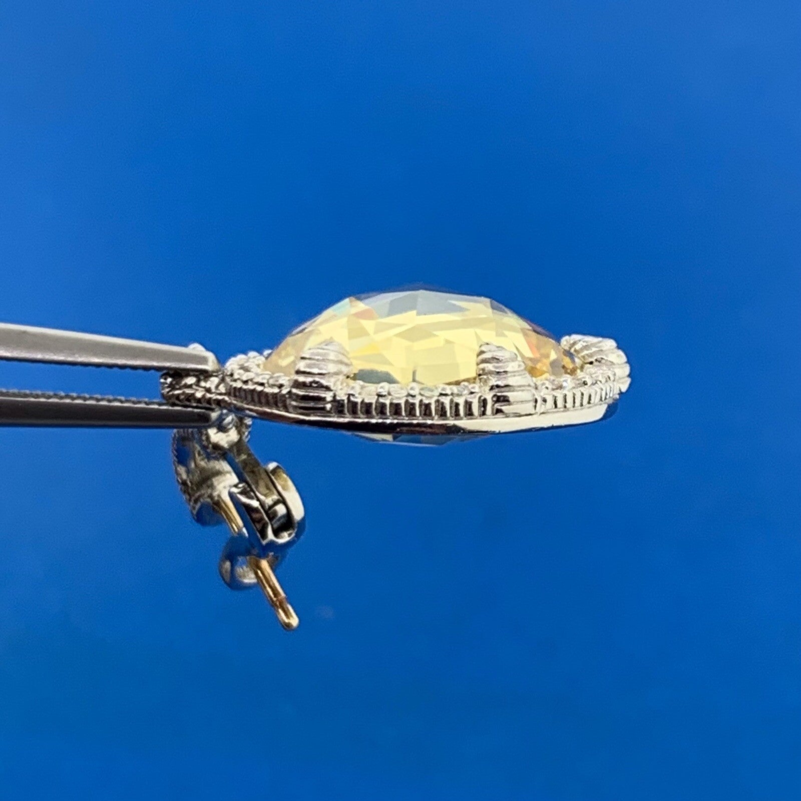 - Judith Ripka 925 Sterling Silver 18K Gold Lemon Quartz Diamond Dangle Earrings
