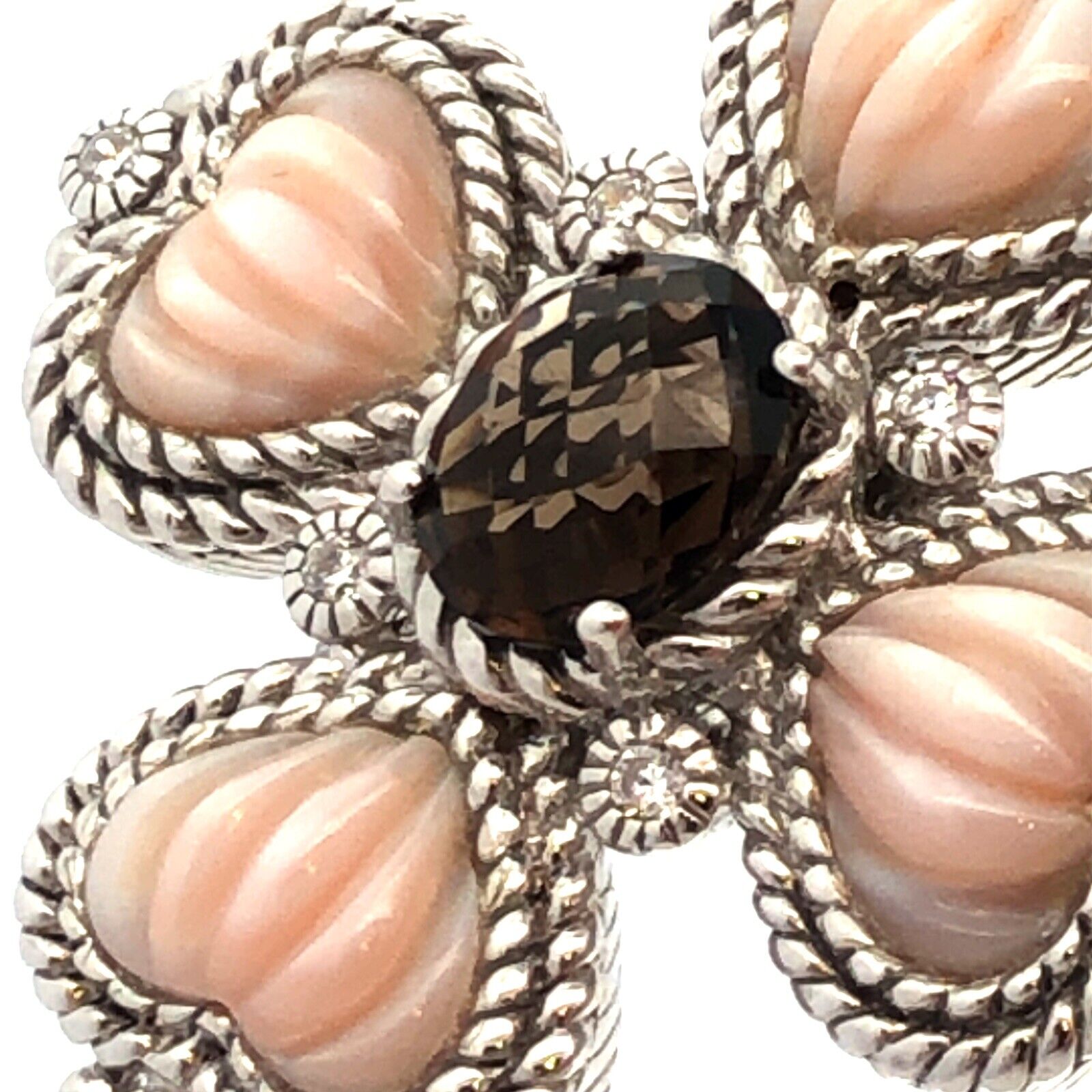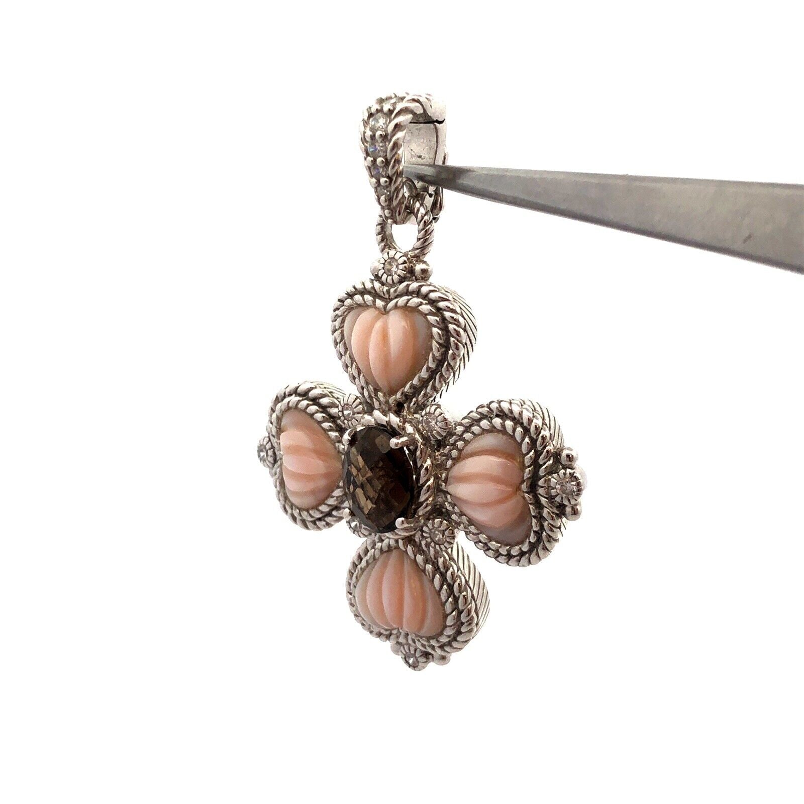 Judith Ripka 925 Sterling Silver CZ Smokey Quartz Mother of Pearl Cross Pendant