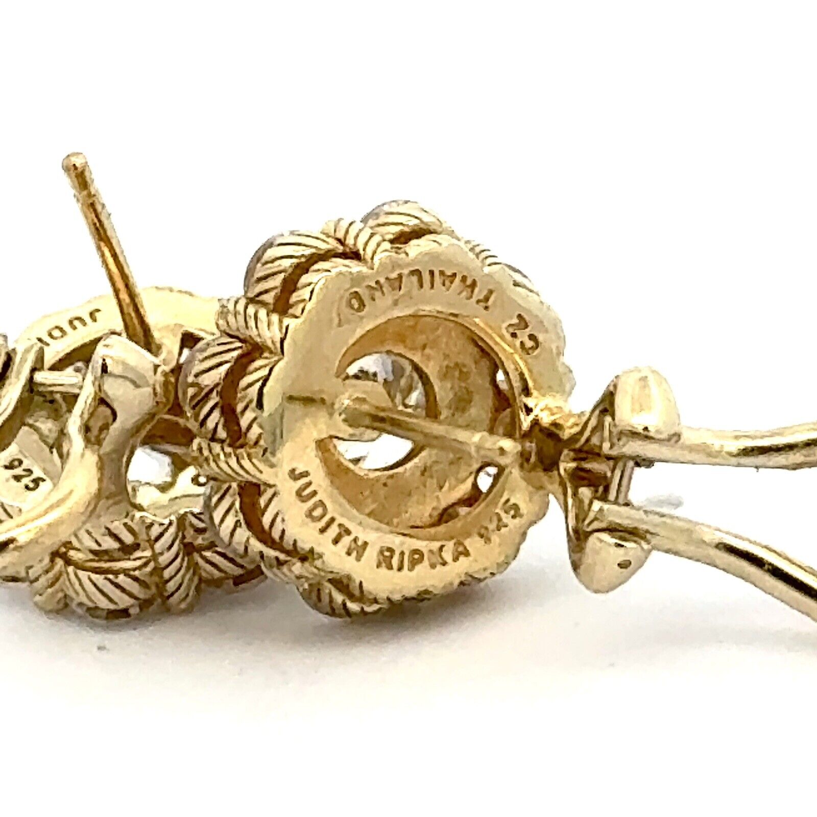 - Judith Ripka 925 Sterling Silver Vermeil Cubic Zirconia Floral Cluster Earrings