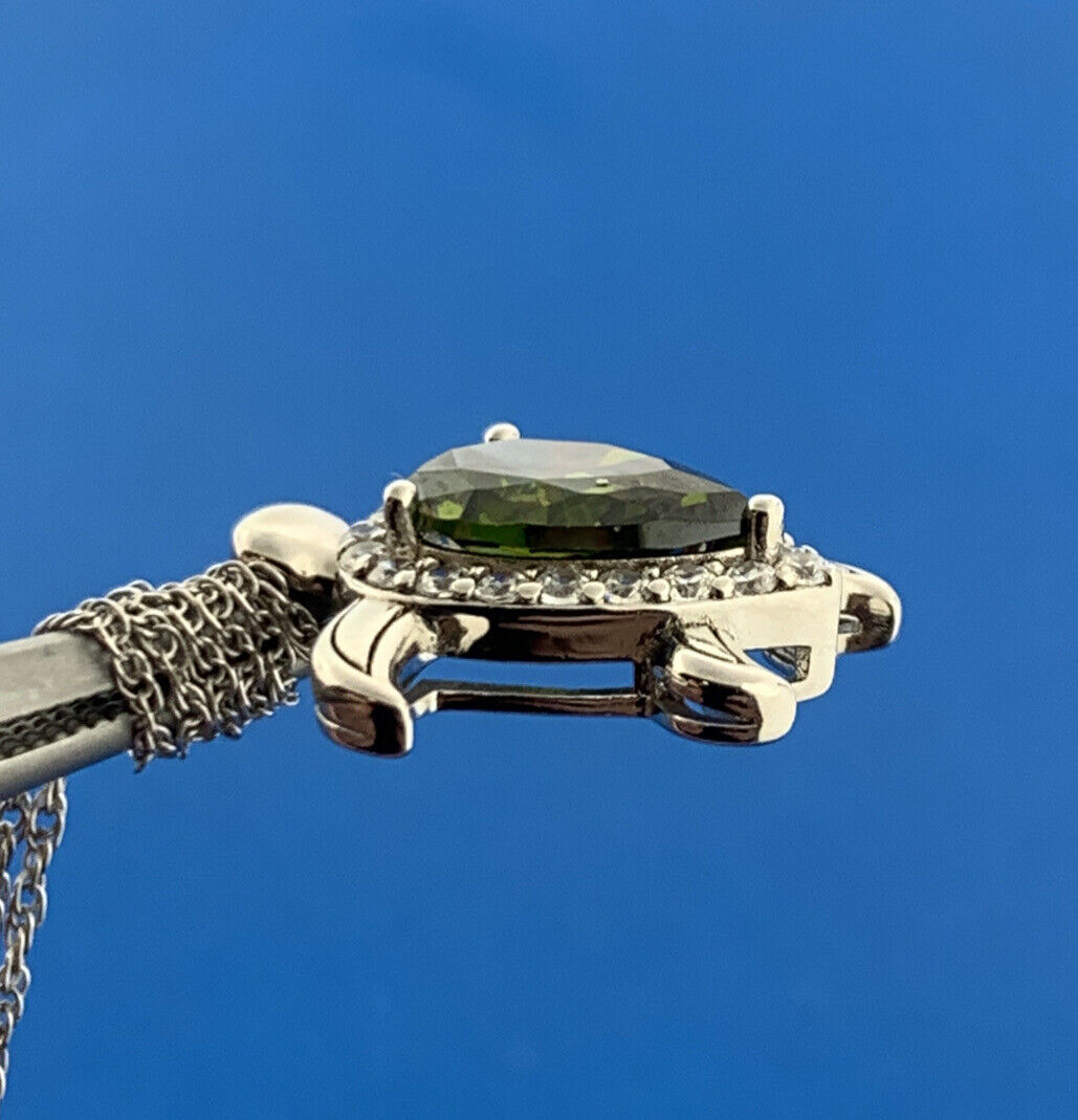 Karizia Spa Italy Sterling Silver Green Cubic Zirconia Turtle Pendant Necklace