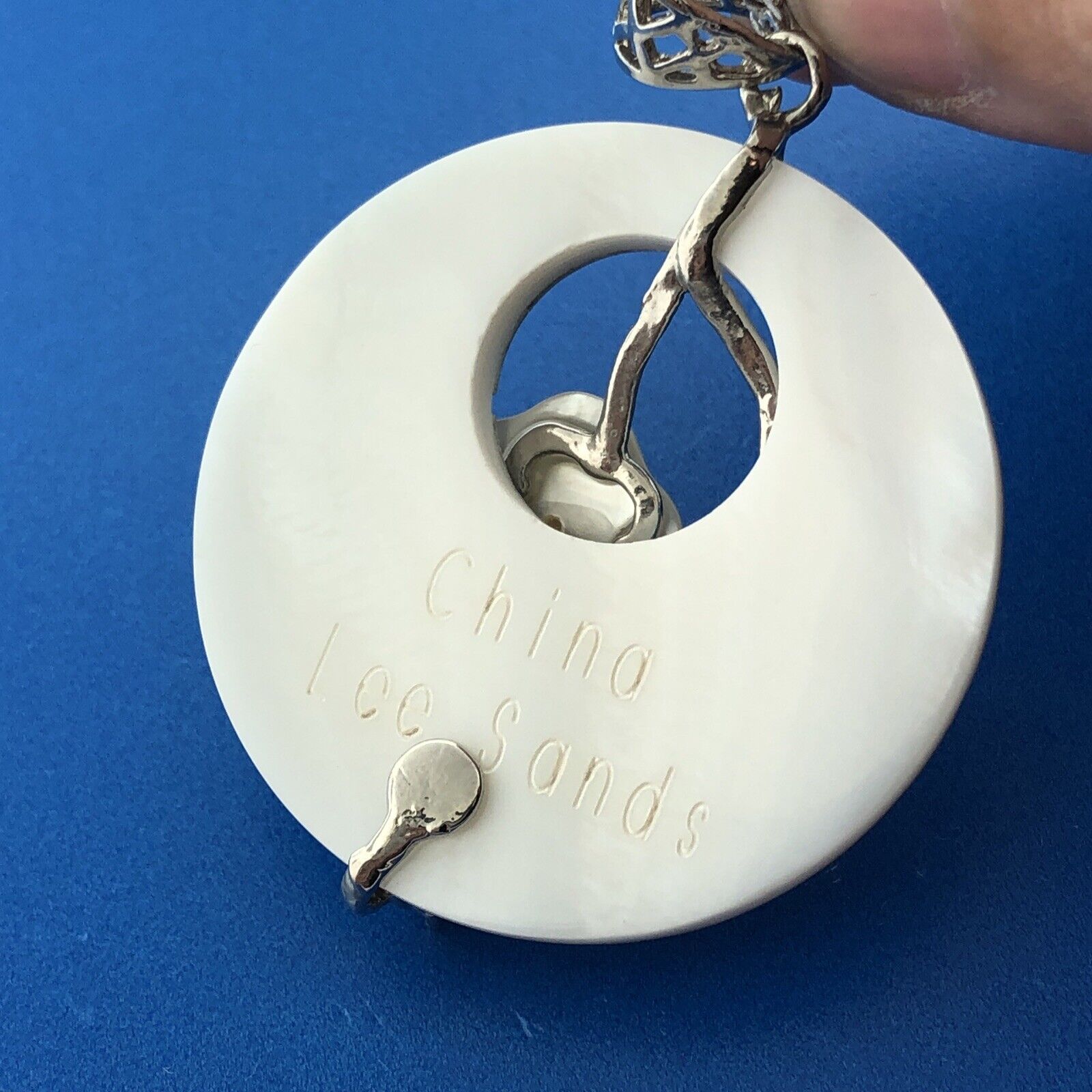 - Lee Sands 925 Sterling Silver CZ Abalone Inlaid MOP Flower Pendant Necklace