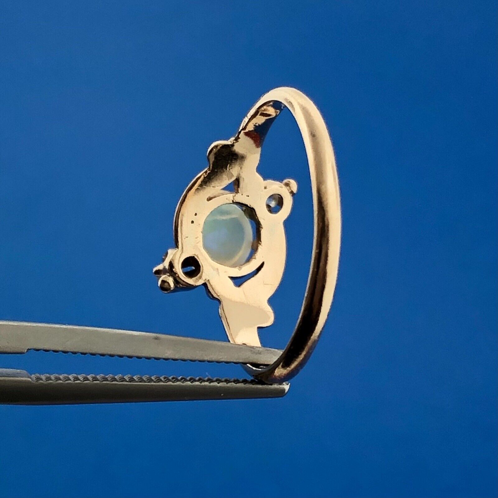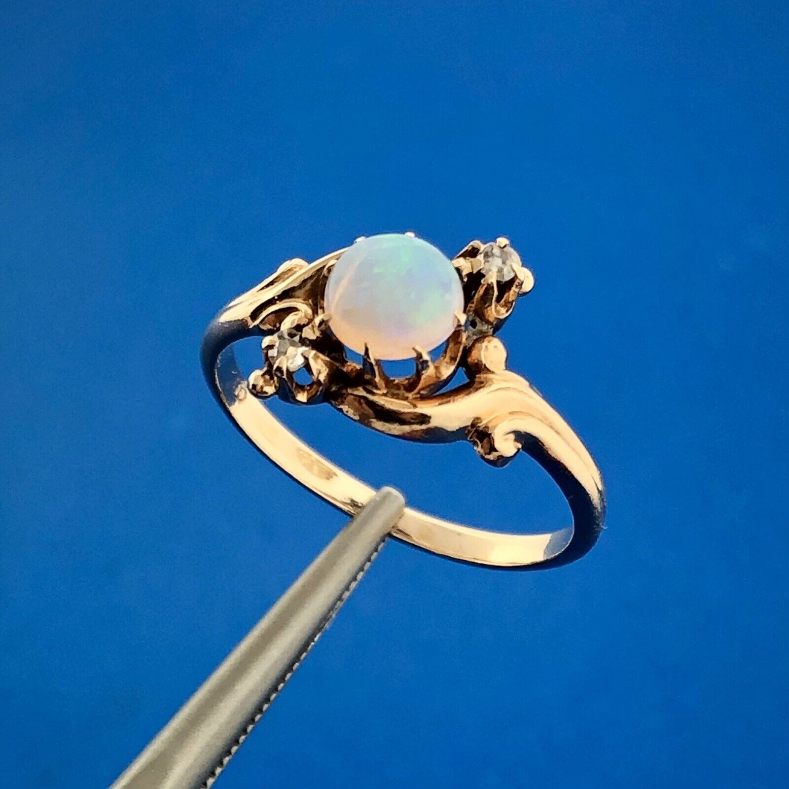 - Stone(s): (1) Cabochon Opal, (2) Melee Diamond