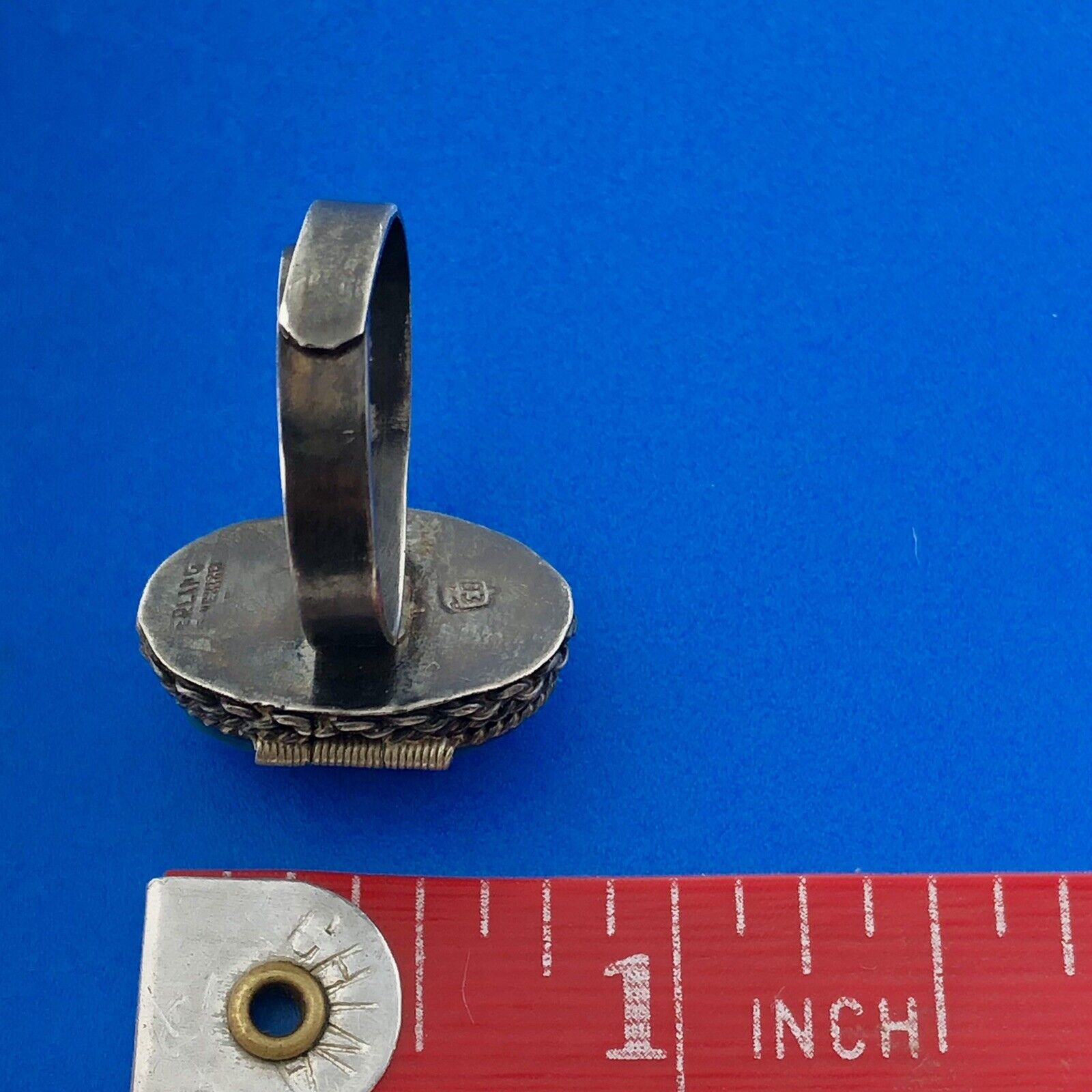 Lovely Sterling Silver 925 Onyx Colored Glass Snuff Poison Pill Adjustable Ring