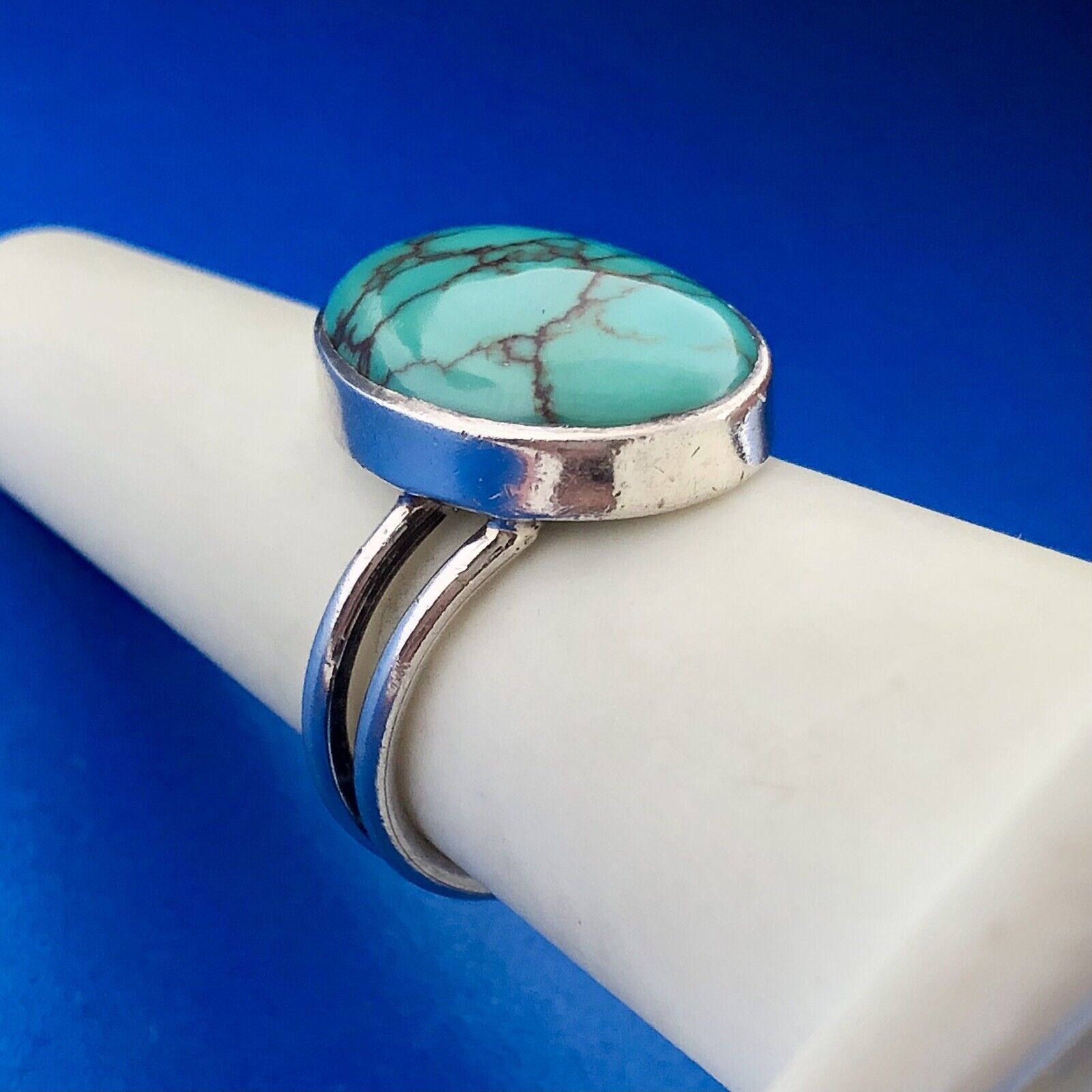 Lovely Sterling Silver 925 Oval Cabochon Turquoise December Ring Size 7.5