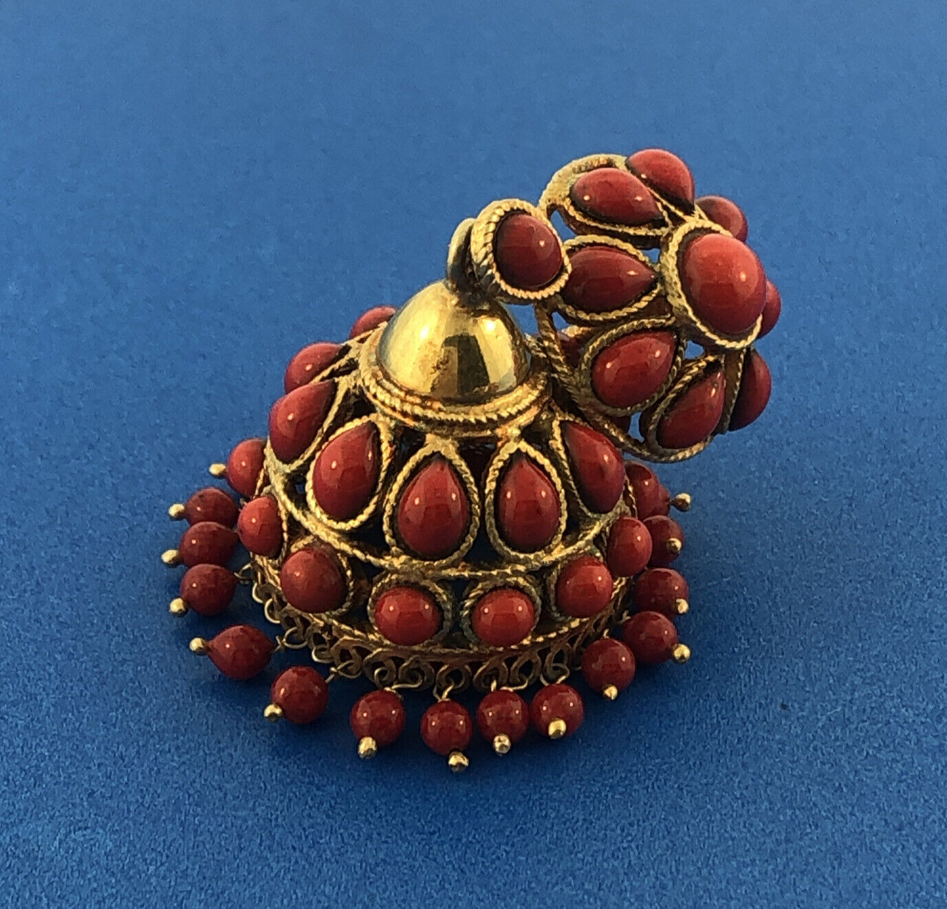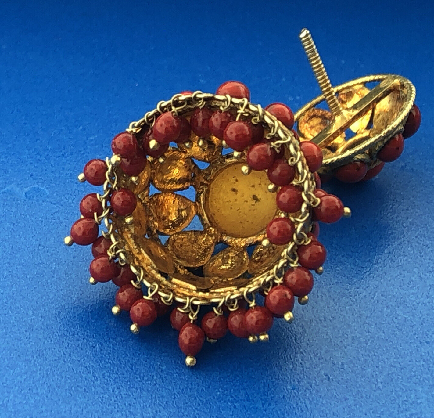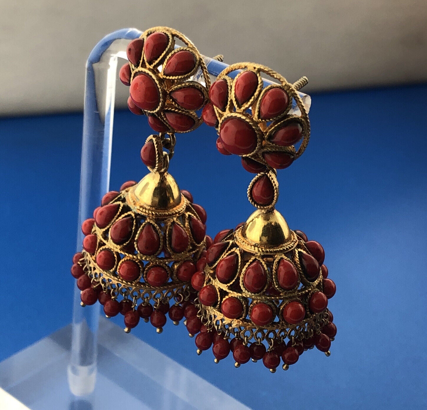 - Lovely Vermeil Sterling Silver 925 Cabochon Coral Lampshade Dangle Stud Earrings