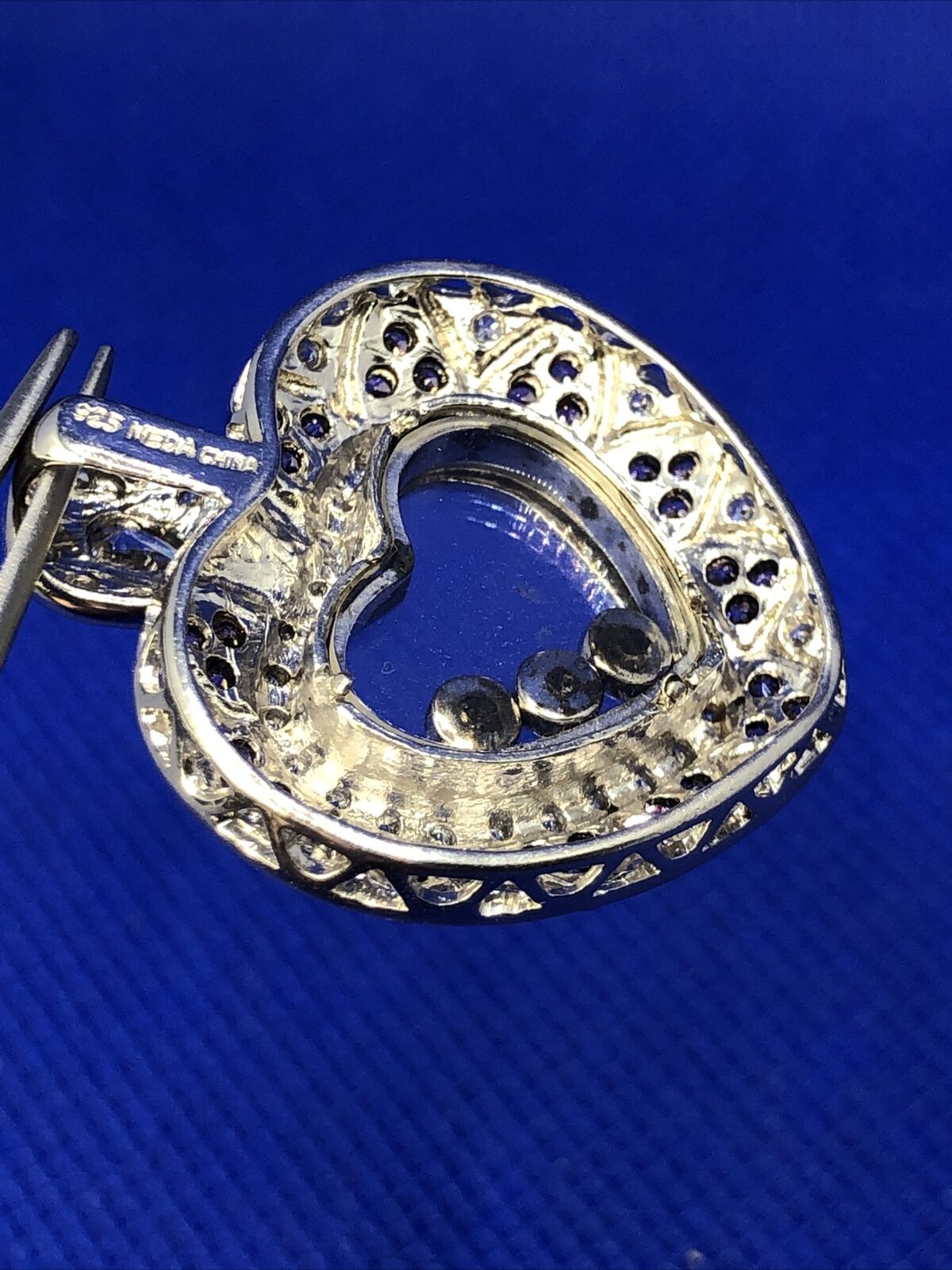 - Meda White and Pink Tourmaline 925 Sterling Silver Heart Floater Pendant