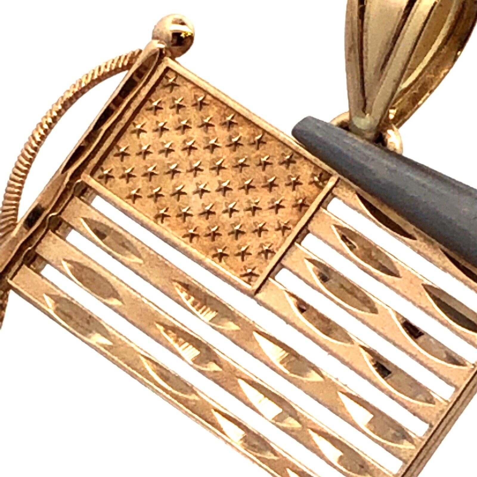 Michael Anthony 14K Yellow Gold God Bless America USA Flag Patriotic Pendant