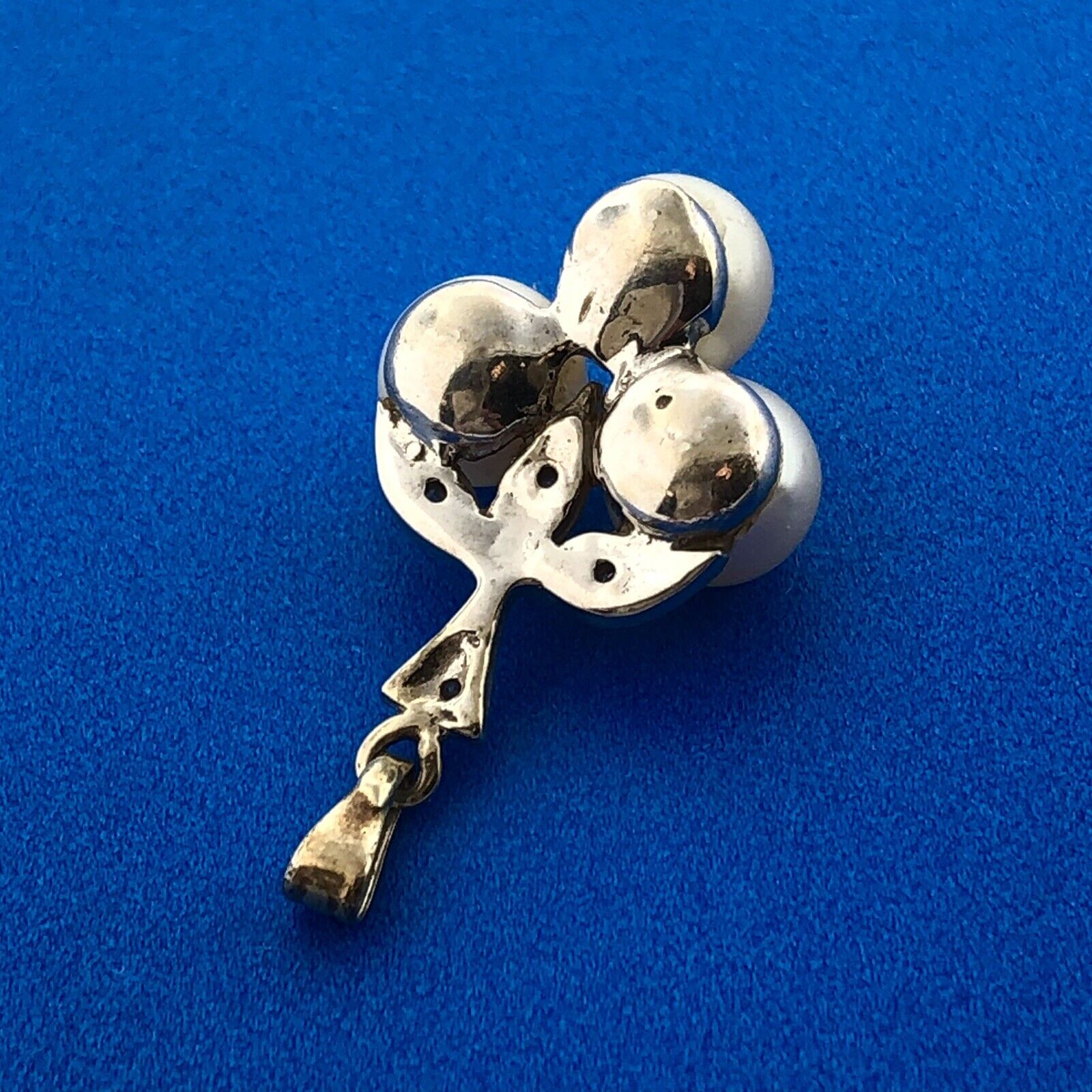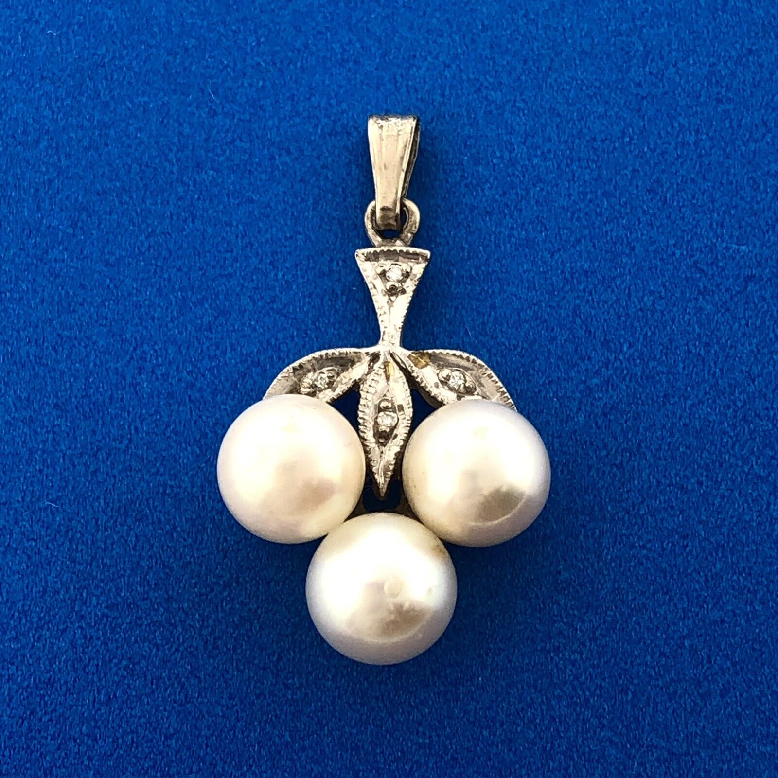 - Mid Century 14K White Gold Pearl Trio Diamond Accented Wedding Drop Pendant