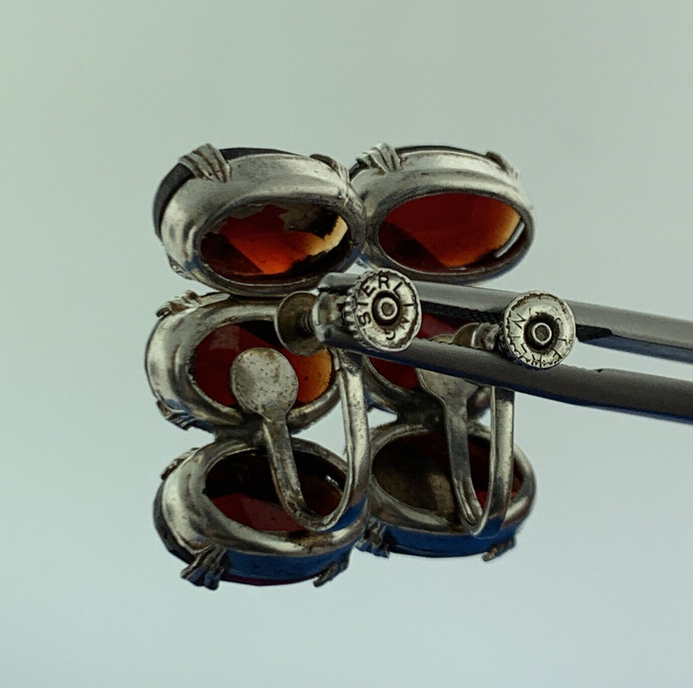 - Mid Century 925 Sterling Silver Red Glass Statement Screw Back Stud Earrings